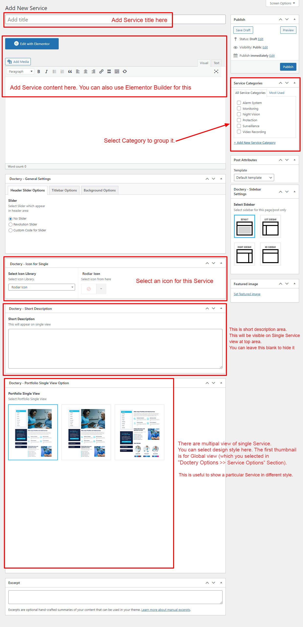 If you already done demo content setup than you can edit existing service and check how we added data so you can understand each option perfectly.