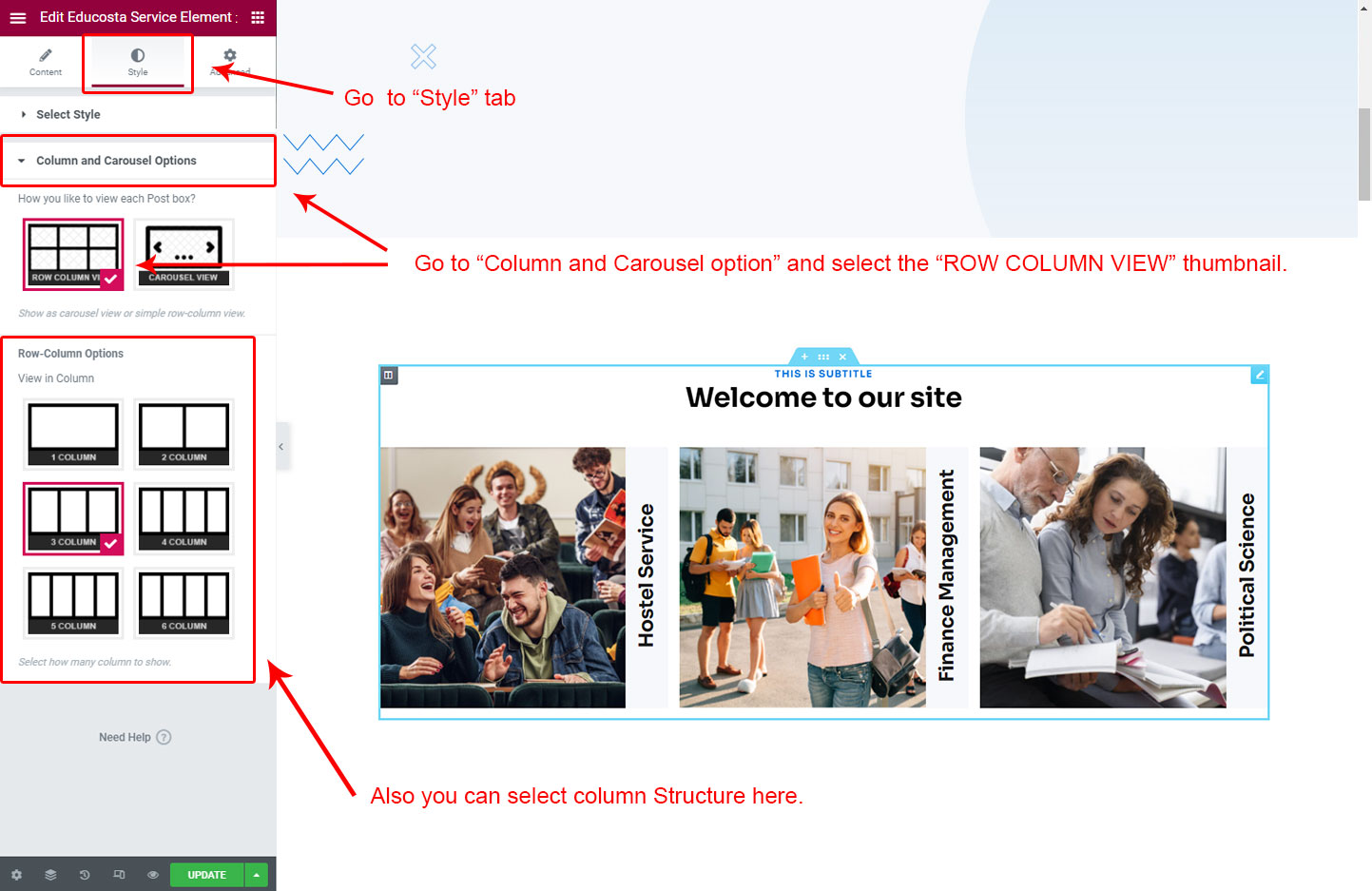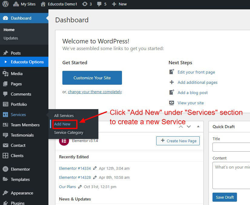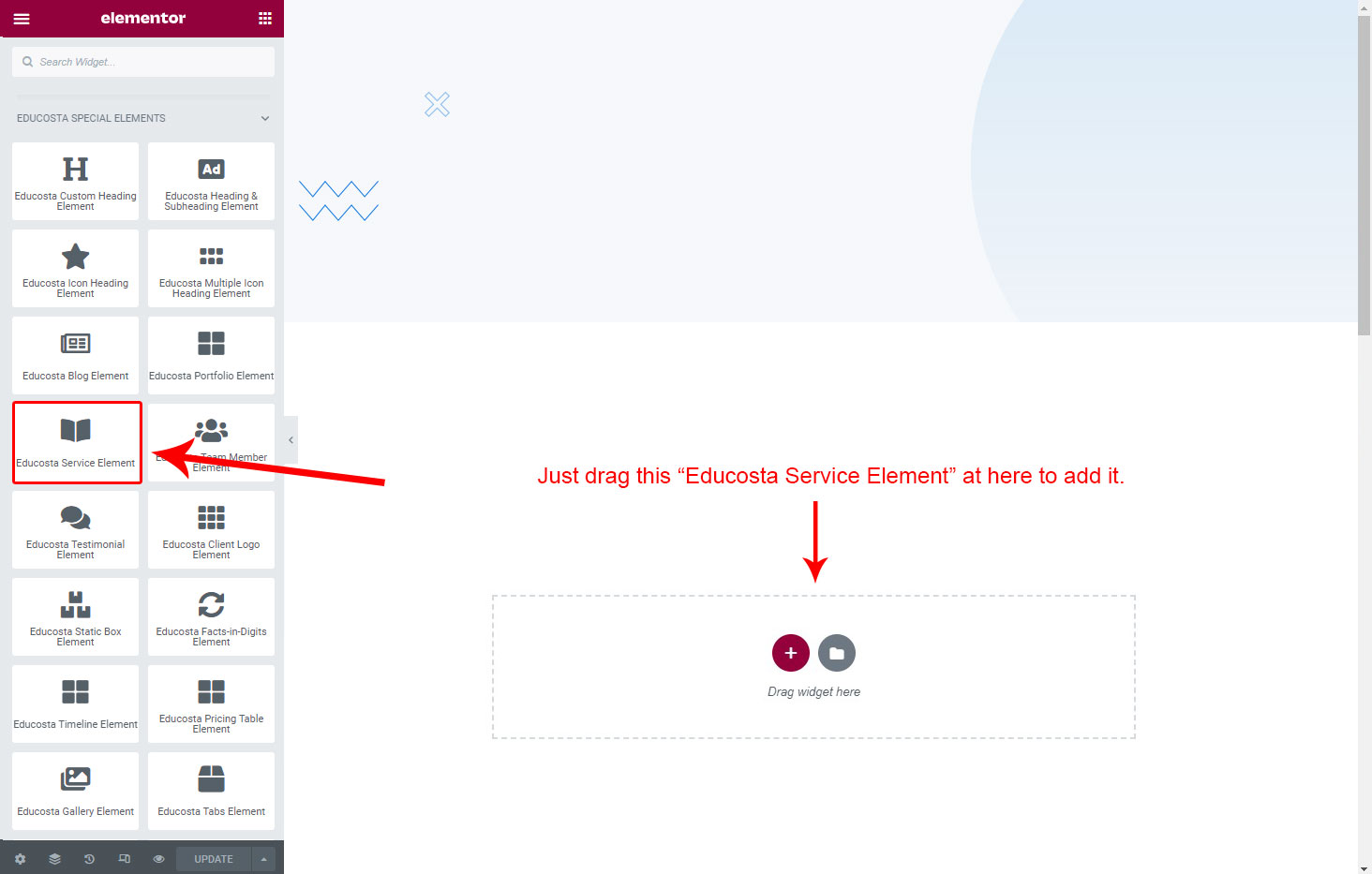Now we have some Service posts. So we can show all Service on a page. Create a new page and add Educosta Service Element on a page by dragging it.