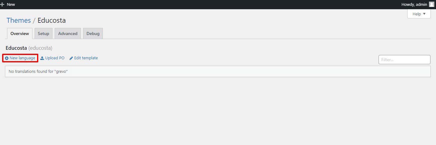 3. Now go to Loco Translate section and click on Educosta theme.