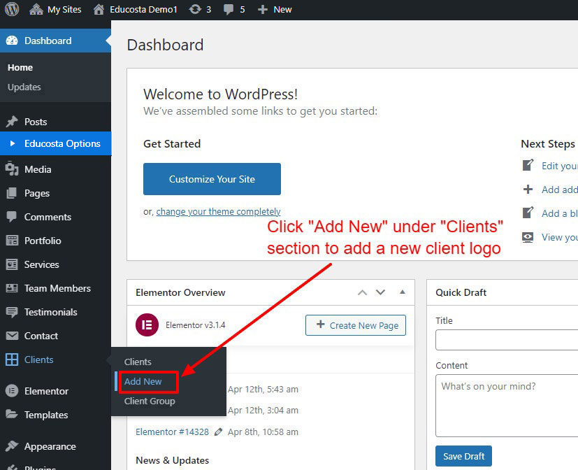 First go to Clients >> Add New to add a new logo.