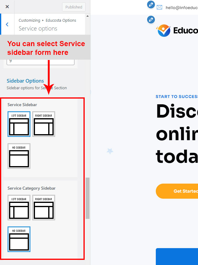 This is specially created sidebar postion for Service Category view only. You can select sidebar view (left or right) in Educosta Options >> Service Options section. Also you can show Service Category without sidebar too.