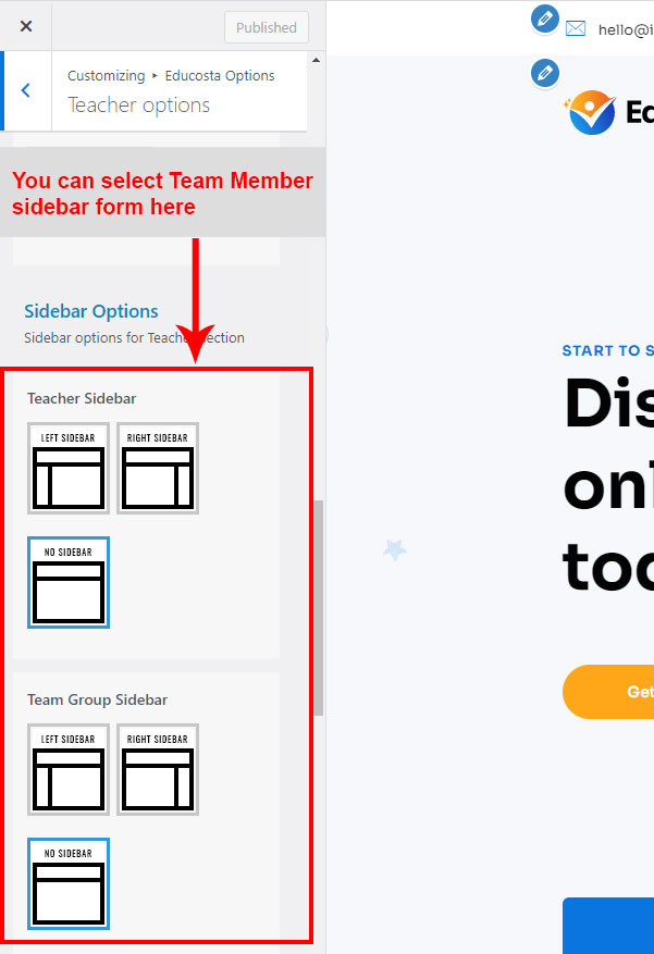 This is specially created sidebar postion for Team Group view only. You can select sidebar view (left or right) in Educosta Options >> Team Member Options section. Also you can show Team Group without sidebar too.