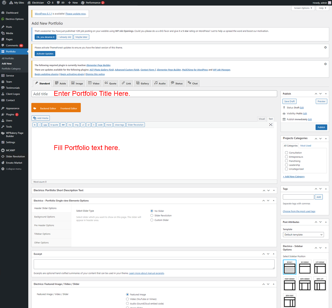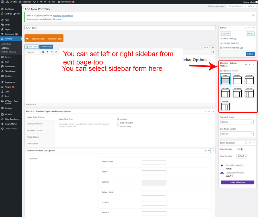 • Left Sidebar For Portfolio: You can add Widgets that you want to display as Left sidebar for Portfolio page only.