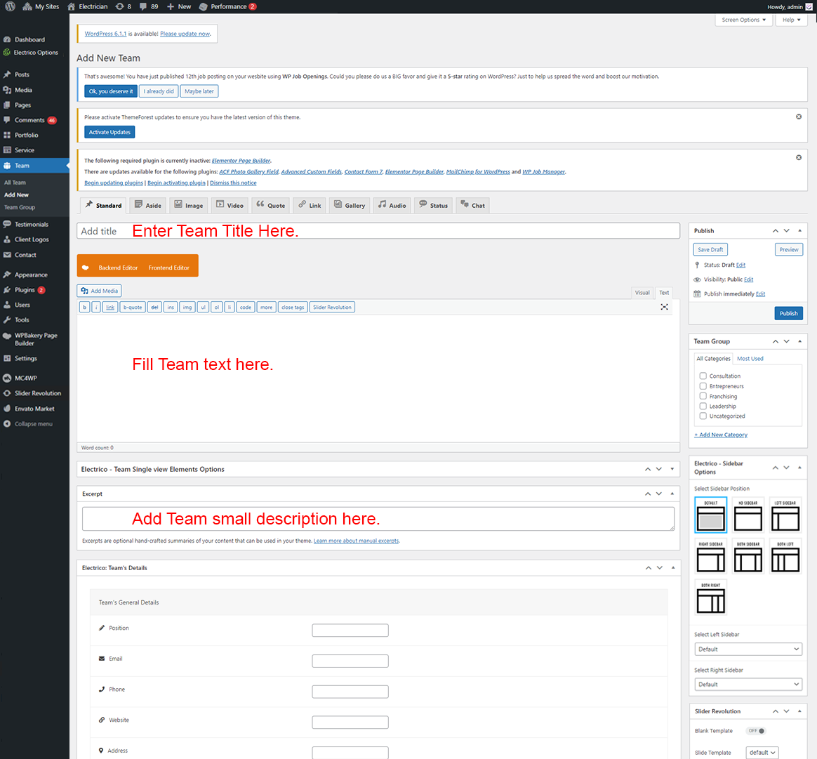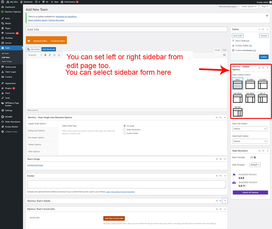 • Right Sidebar For Team: This widget position is specially created for Team page only.You can add Widgets that you want to display as Right Sidebar For Team page only