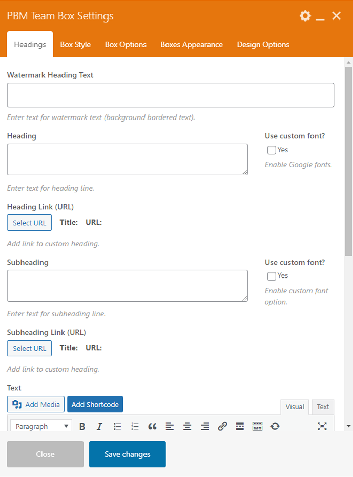 Here you can change font family, font size, folor color etc for different areas. For example, you can change font-family or font-size for general texts, H1 to H6 tags, Heading texts, Subheading texts, Widget heading etc.