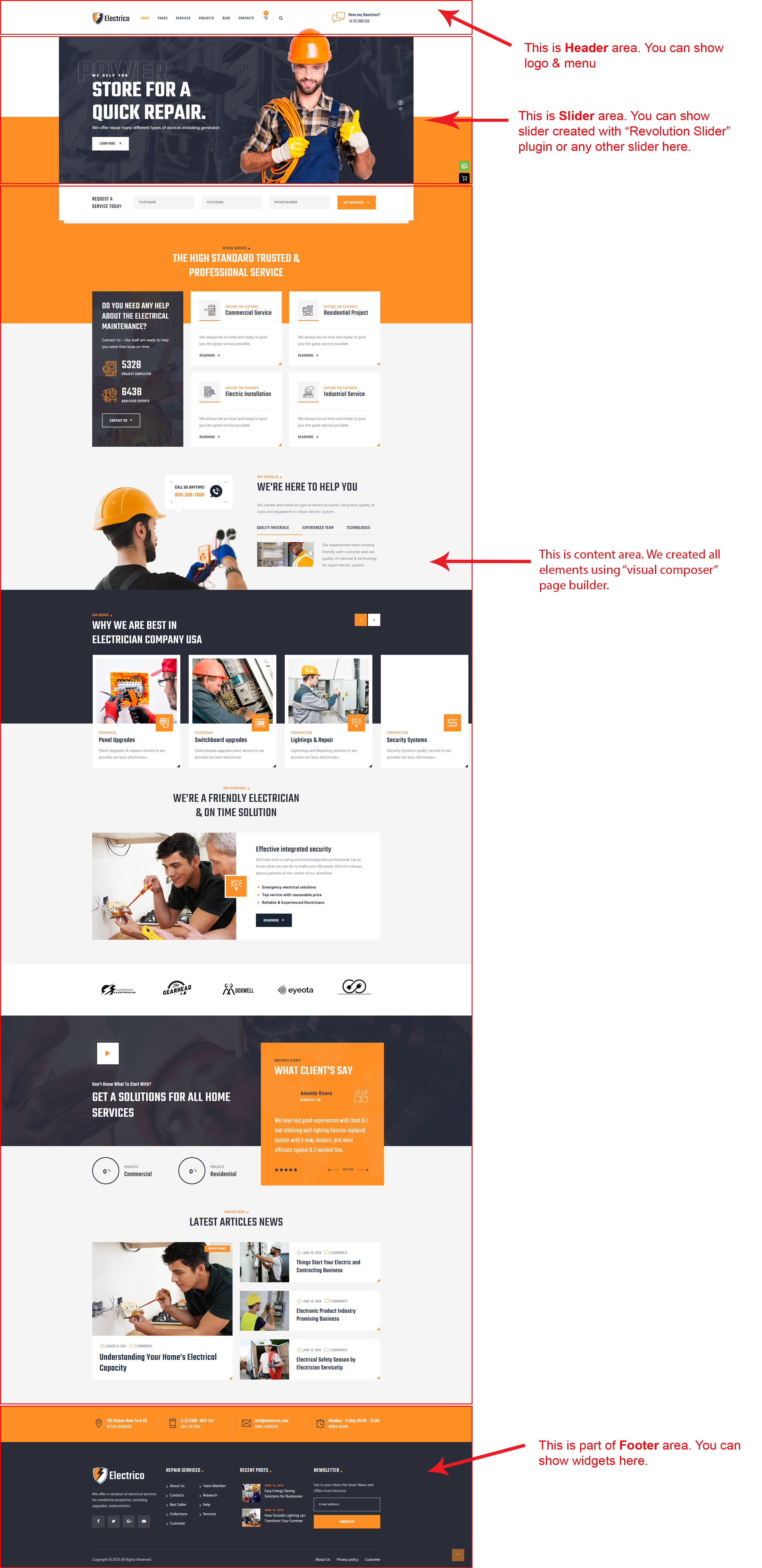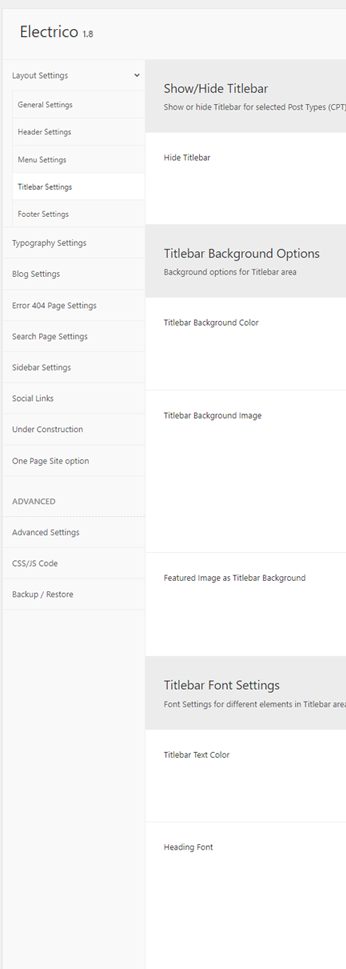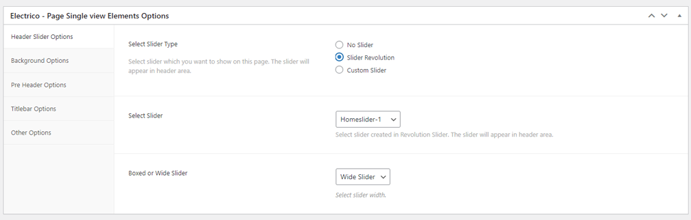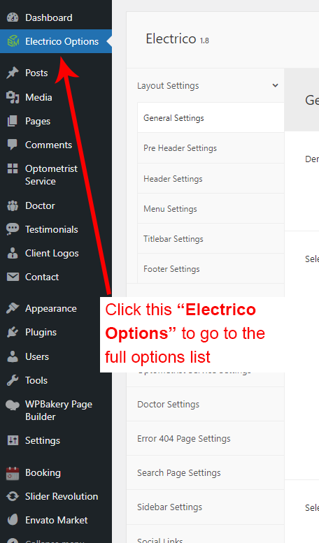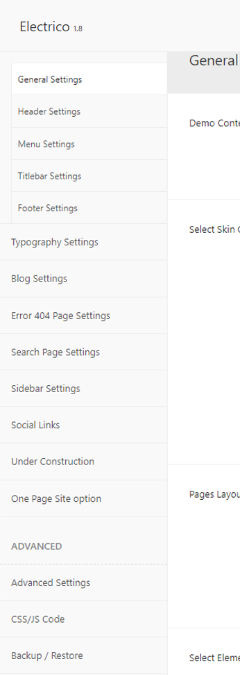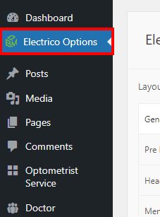 There are different sections in Electrico theme. Here you will find name of each section name so you can find their options easily. You can customize each sections from Electrico Options easily.