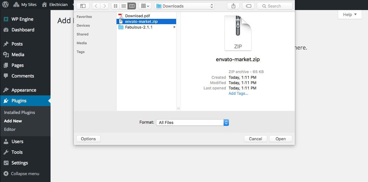 • First, install Envato Market plugin. Click here to download the plugin. This will download the zip file with the plugin in it. No need to unzip it – we’ll be installing it as is. Now that you have the plugin, go ahead and log into WordPress admin section.