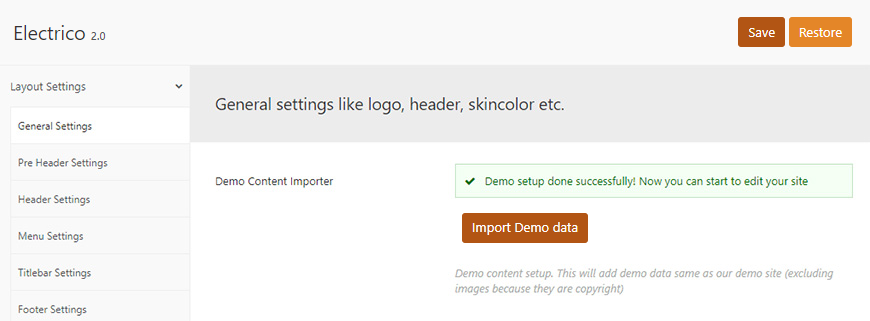 Electrico Options (Theme Options)