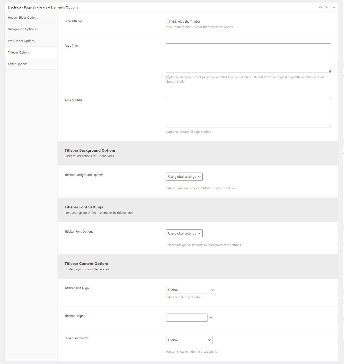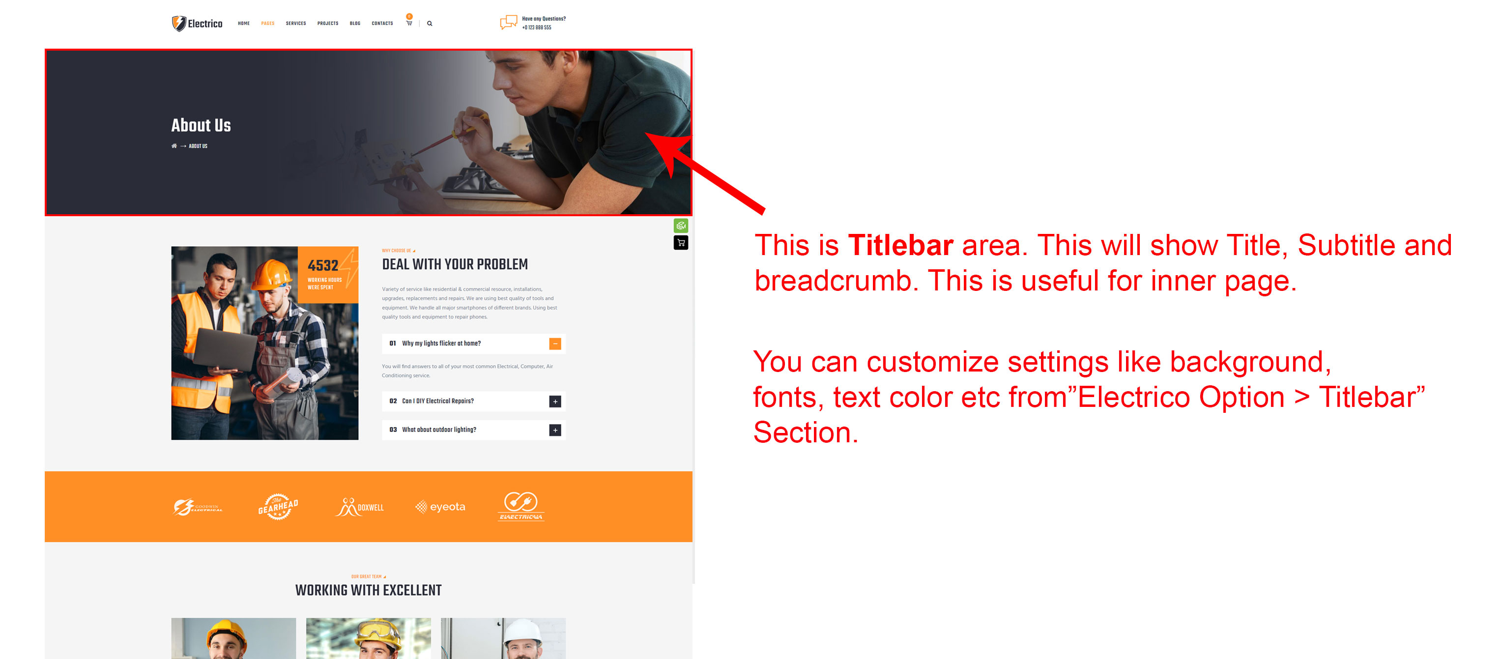 Generally the Titlebar will appear on inner page. This will appear below header area. This will show page title, subtitle and breadcrumb. (Where is Titlebar?)
