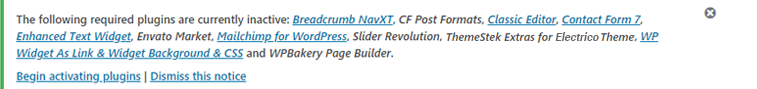 1. After the theme activation, you will see a prompt with a list of plug-ins to install. Click on the Begin installing plugins link or go to Appearance > Install Plugins.