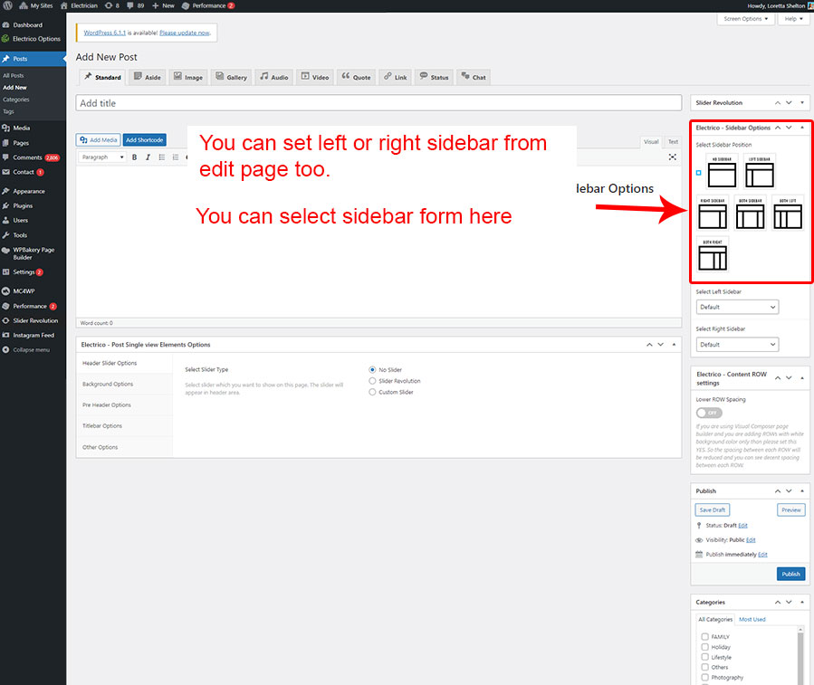 • Left Sidebar For Blog: You can add Widgets that you want to display as Left sidebar for (only) Blog pages like Blogroll, Category, Tag, Archives etc pages.