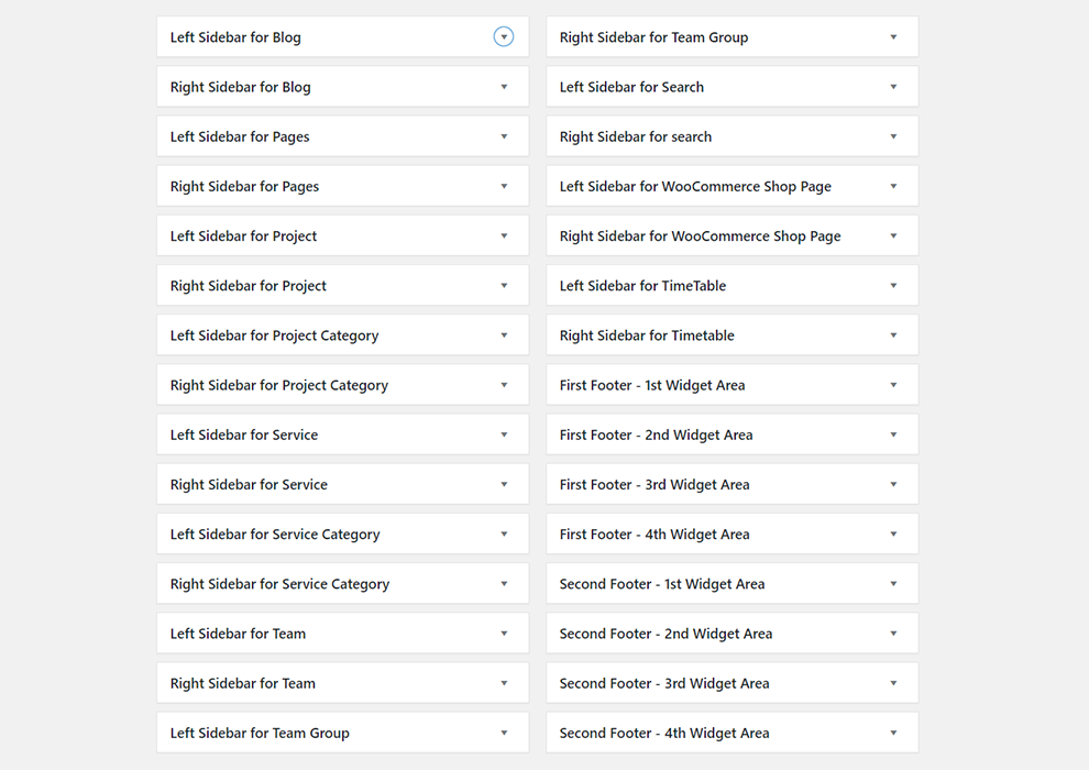 • Right Sidebar For Service: You can add Widgets that you want to display as right sidebar for Service page only.