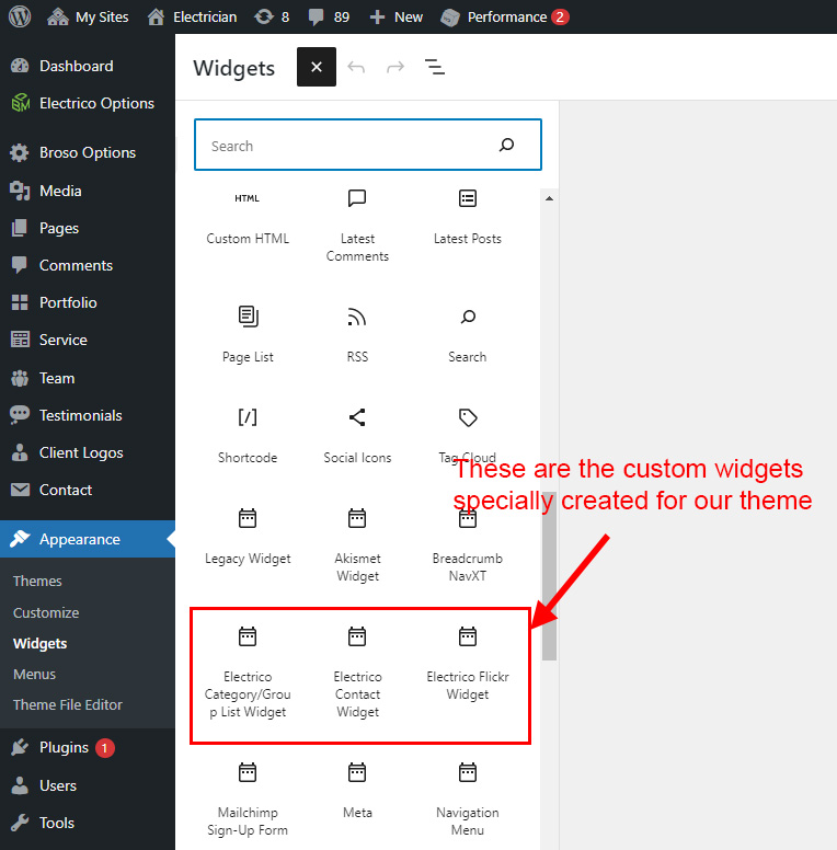 • Left Sidebar For Portfolio Category: This widget position is specially created for Portfolio Category page only. You can add Widgets that you want to display as Left sidebar for Portfolio Category page only.
