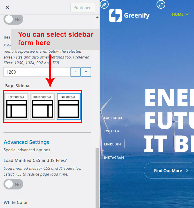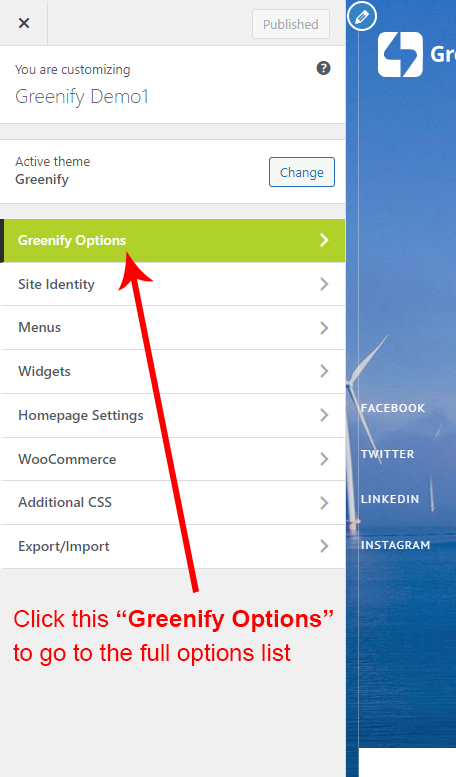 Now click on the Greenify Options and you will see lot's of options for different theme sections.