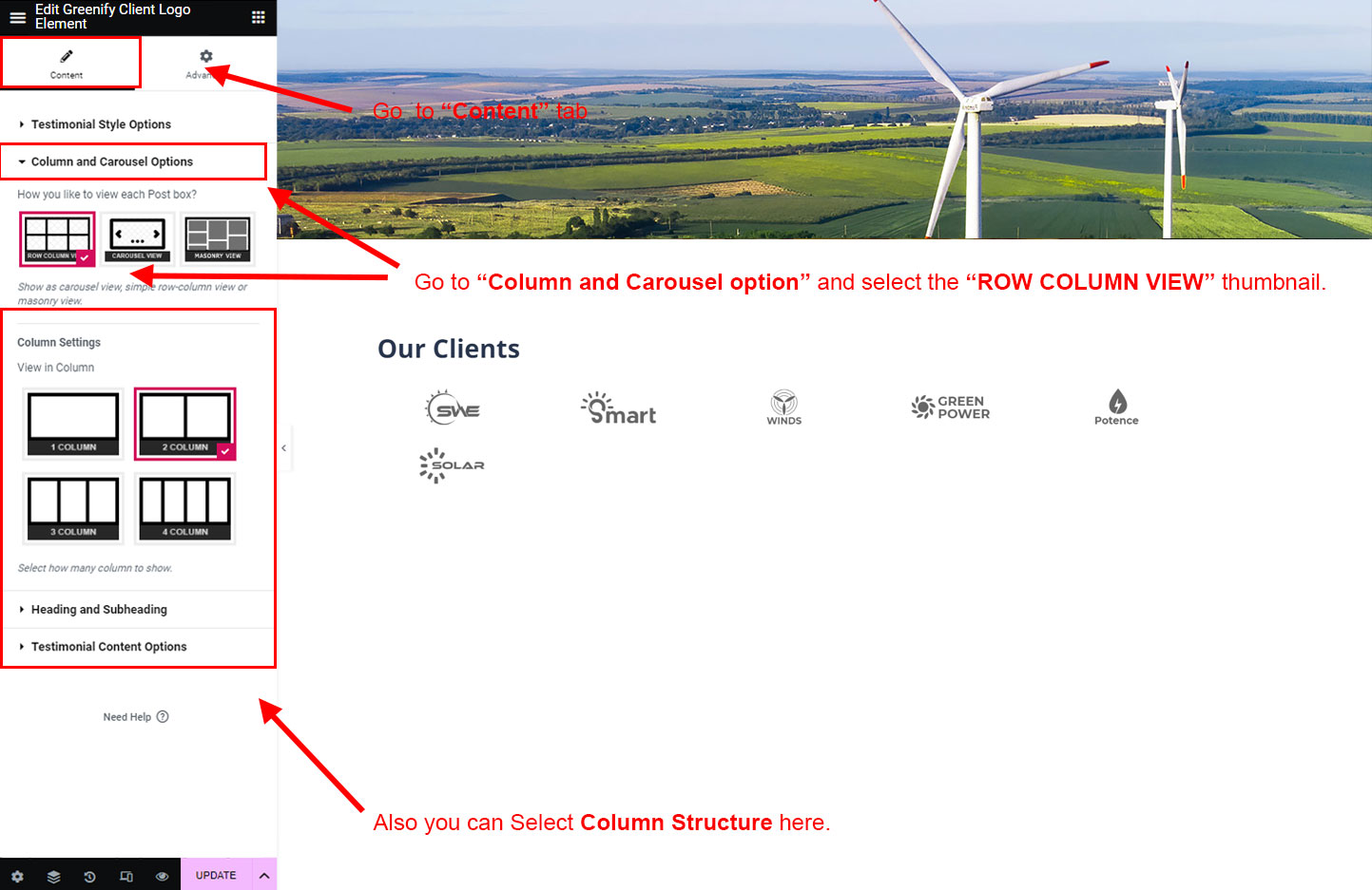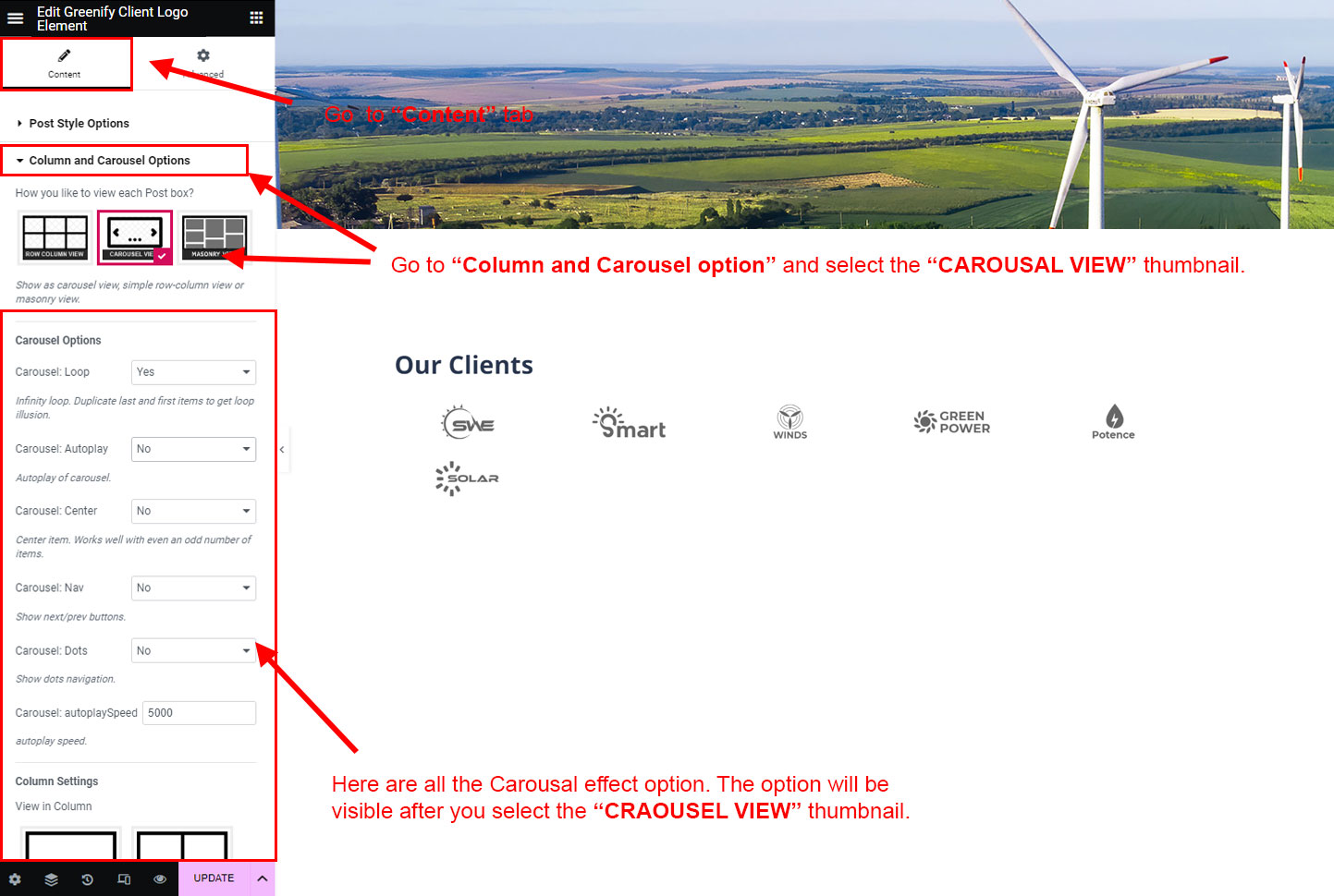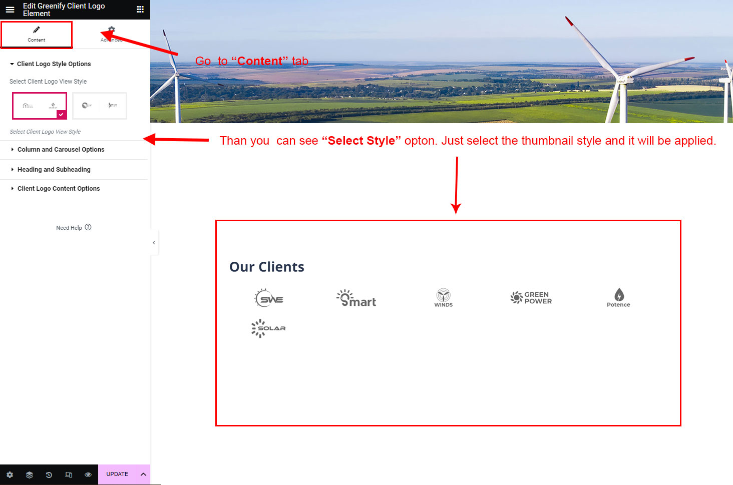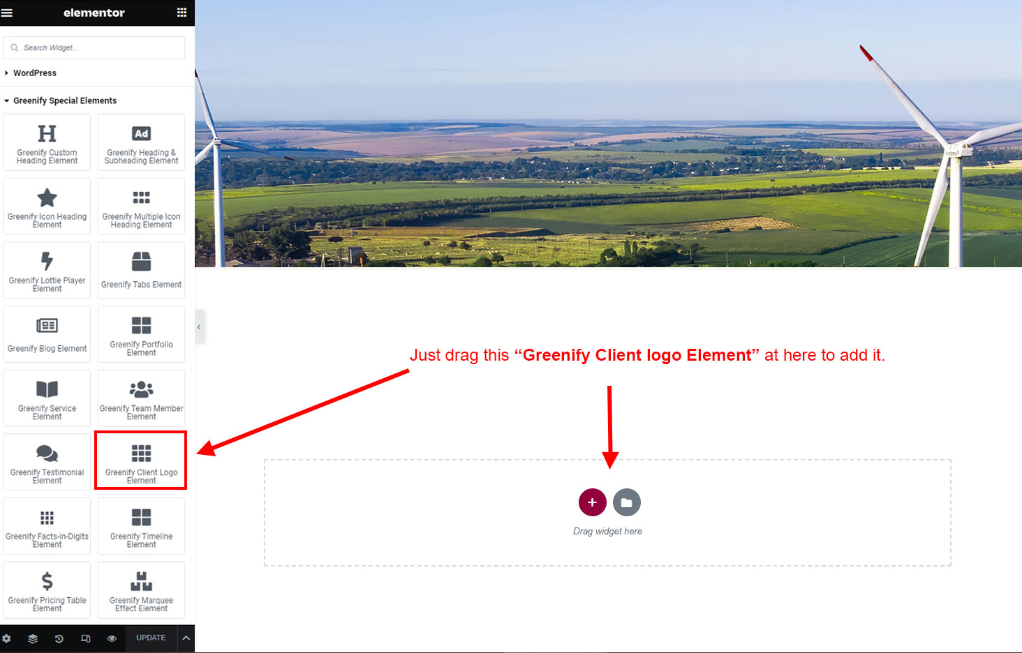 Now we have some Client Logo posts. So we can show all Client Logo on a page. Create a new page and add Greenify Client Logo Element on a page by dragging it.