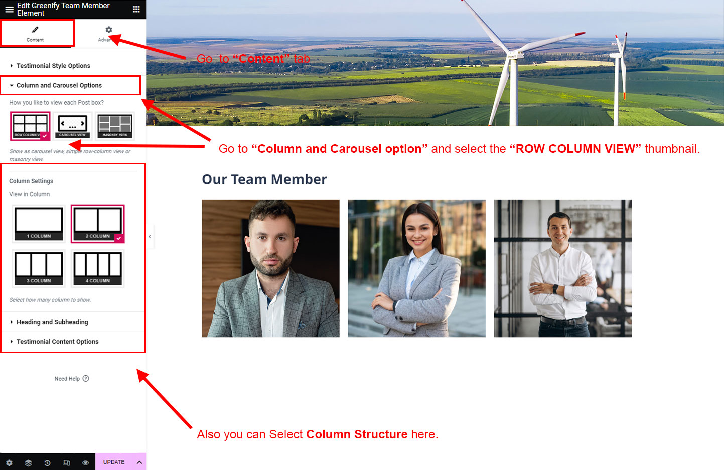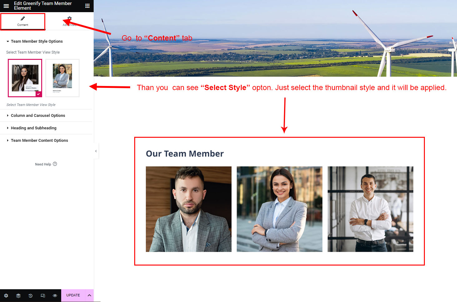 You can select the team options here. Like how many team you like to show, show team from selected category, team order etc.