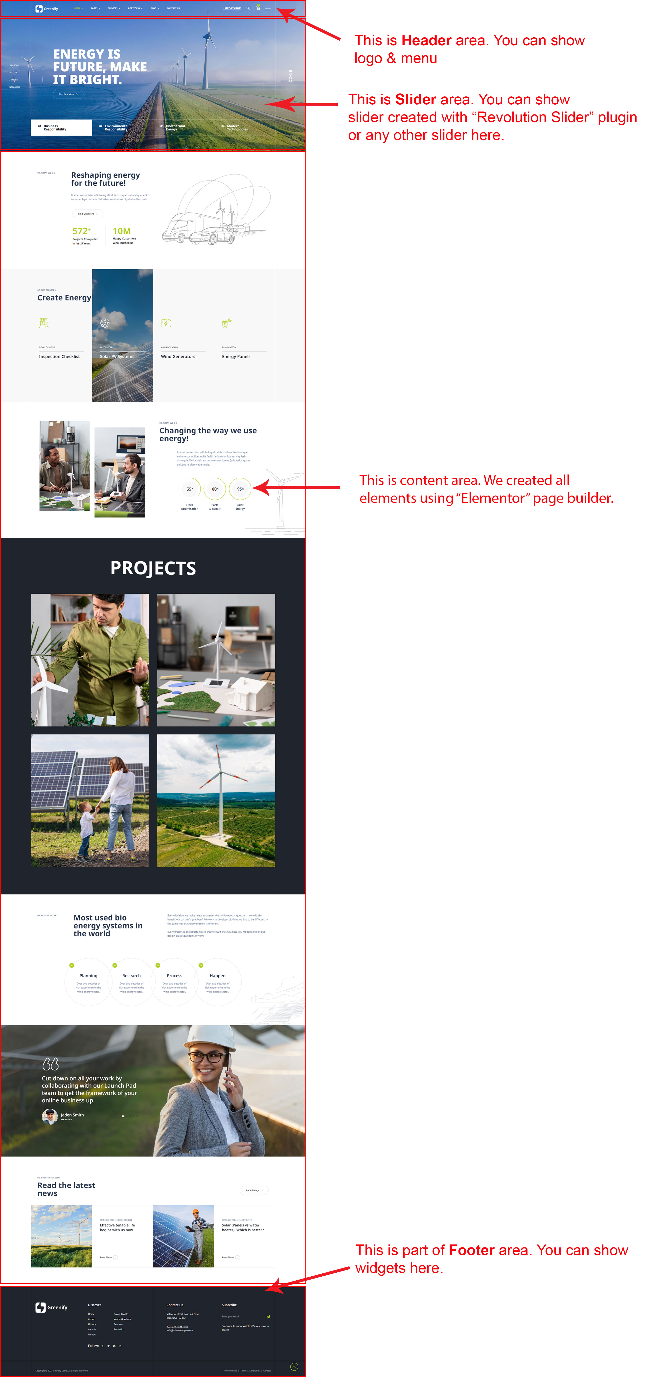 There are different sections in Greenify theme. Here you will find name of each section name so you can find their options easily. You can customize each sections from Greenify Options easily.