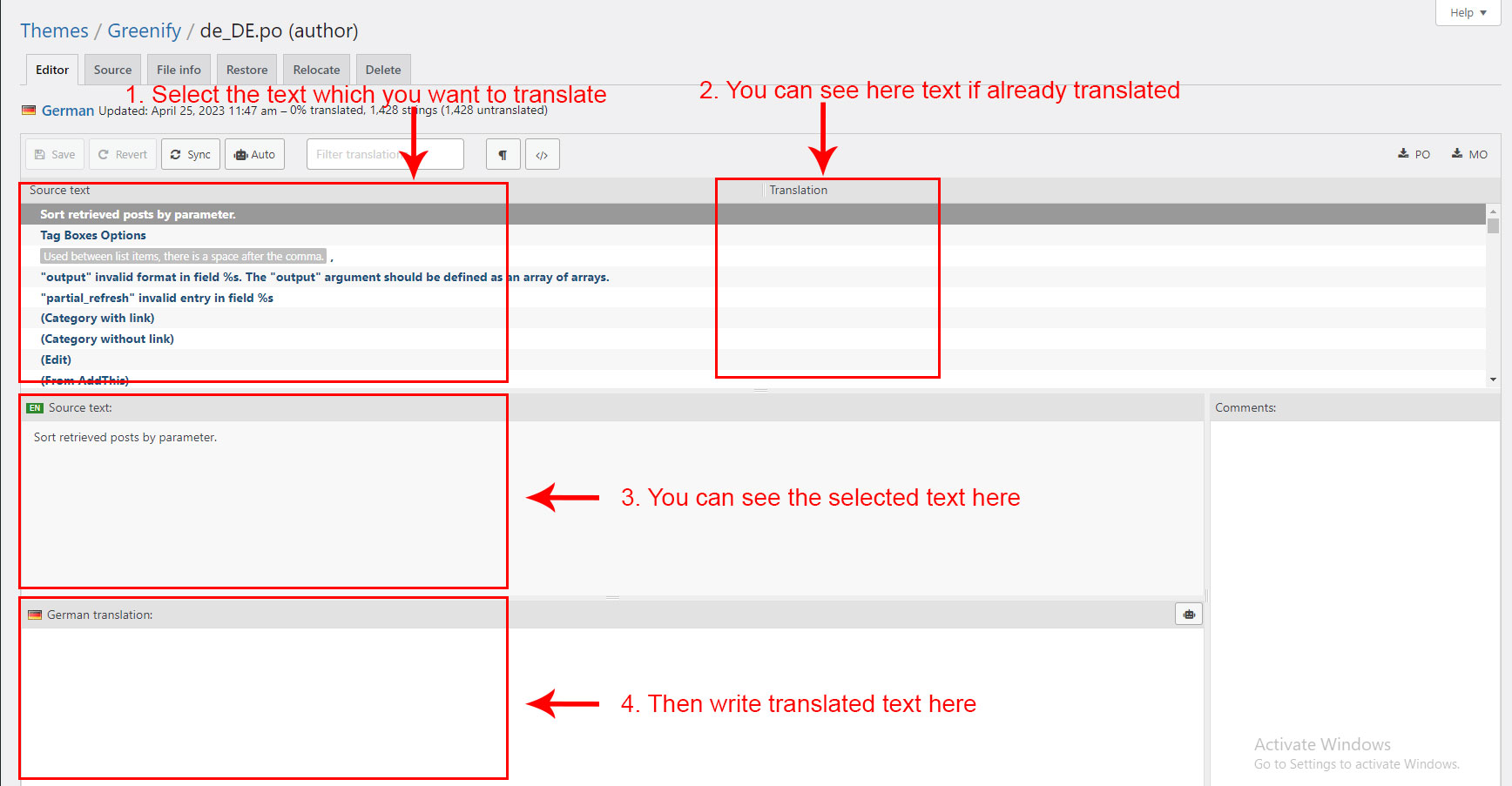 Within this section, you’ll find everything you need to localize and internationalize the Greenify theme into your language. It is split into several subsections to help you easily find what you need. There are different ways for this: