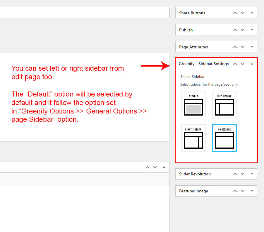 This is specially created sidebar postion for Pages only. You can select sidebar view (left or right) in Greenify Options >> General Settings section. Also you can show pages without sidebar too.