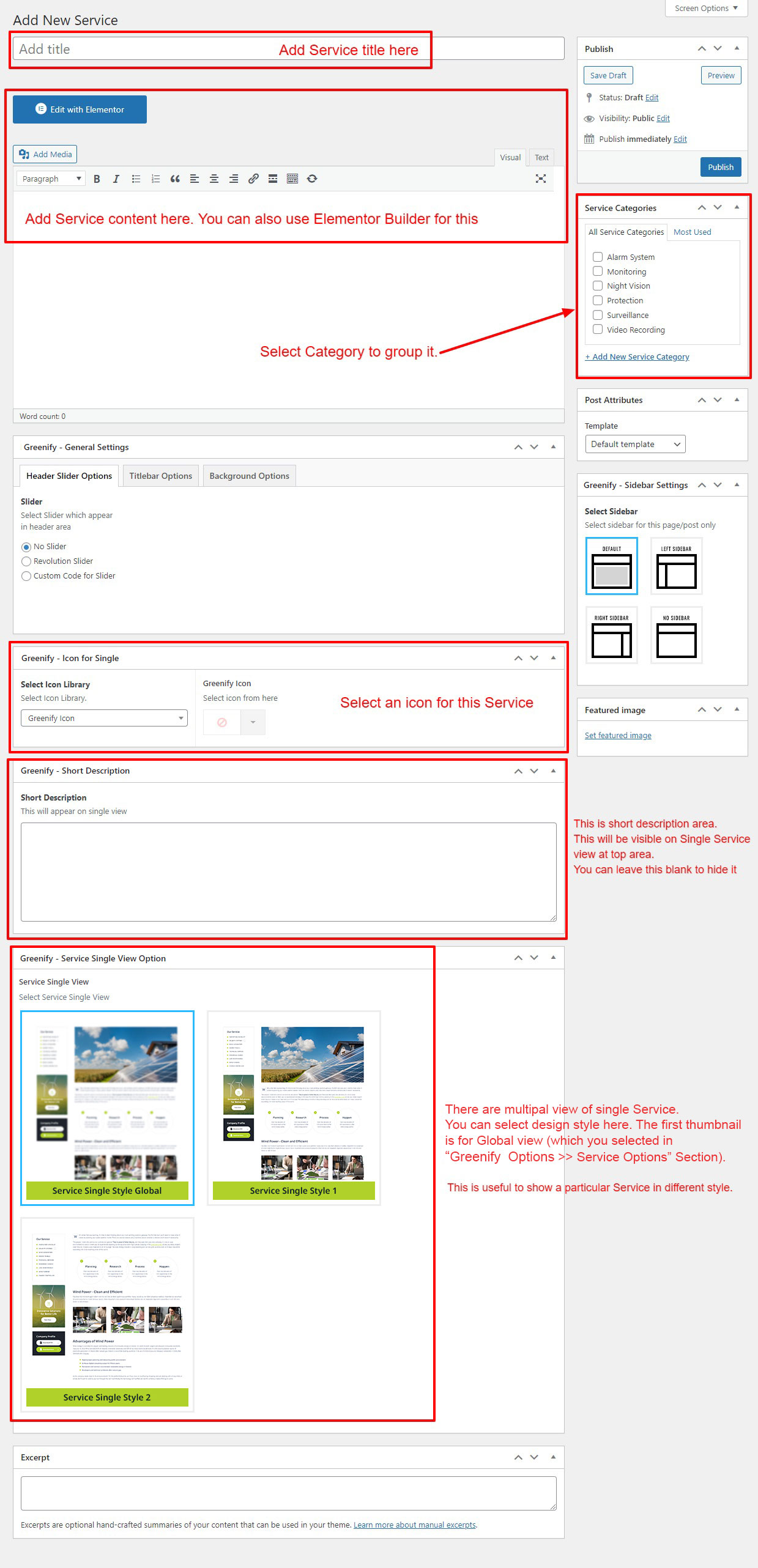 If you already done demo content setup than you can edit existing service and check how we added data so you can understand each option perfectly.