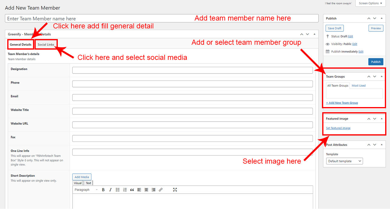 If you already done demo content setup than you can edit existing Team and check how we added data so you can understand each option perfectly.