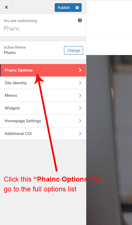 Now click on the Phainc Options and you will see lot's of options for different theme sections.