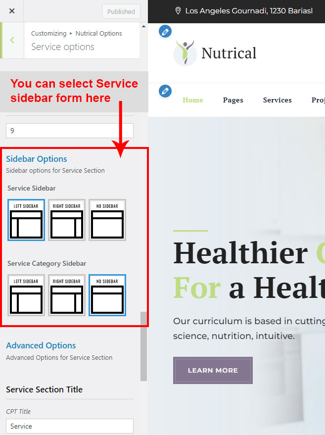 This is specially created sidebar postion for Service Category view only. You can select sidebar view (left or right) in Phainc Options >> Service Options section. Also you can show Service Category without sidebar too.