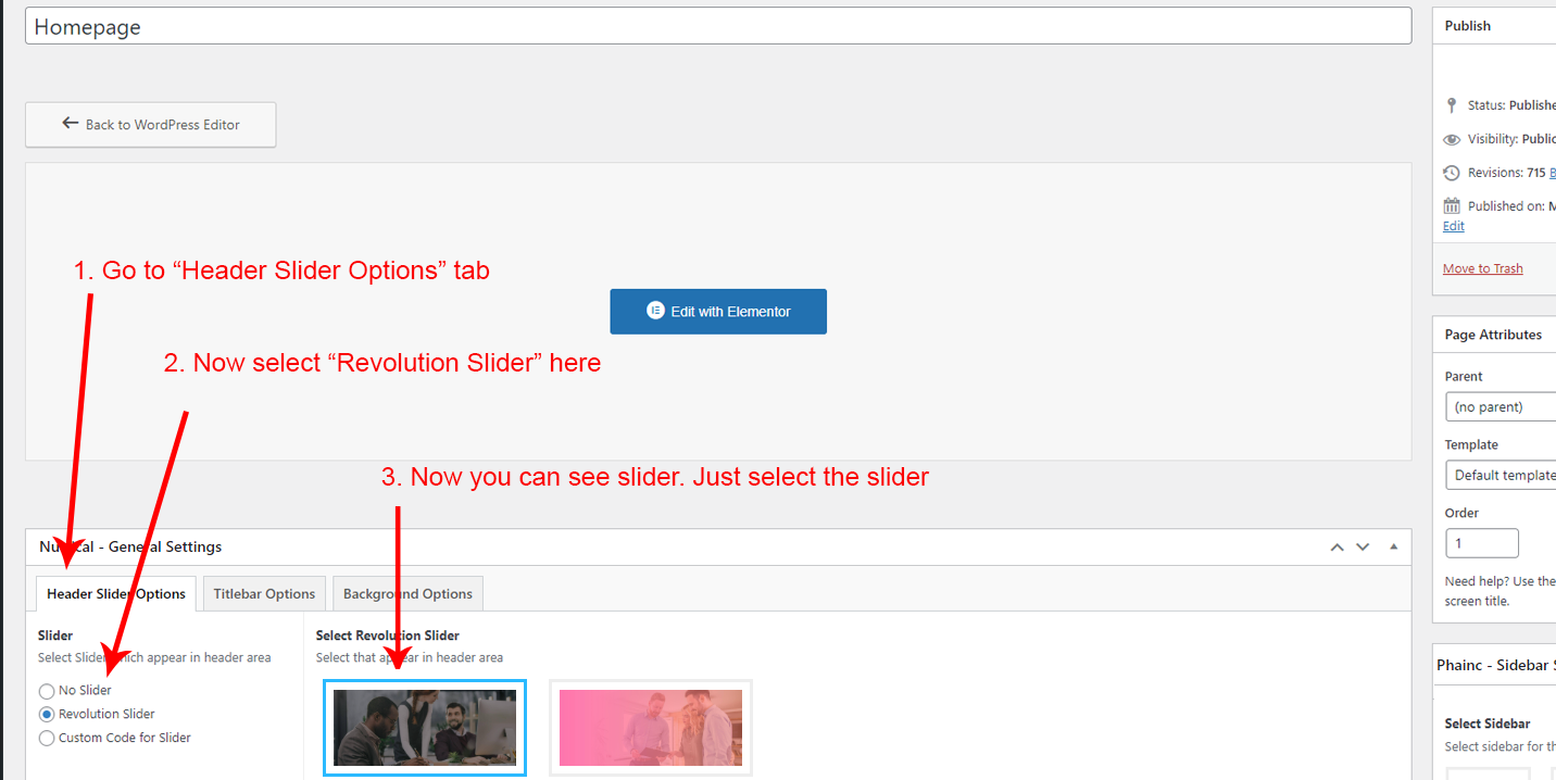 You can select your slider for header area on any page. Just edit the page (generally your homepage) and select the slider. Please see the screenshot given below: