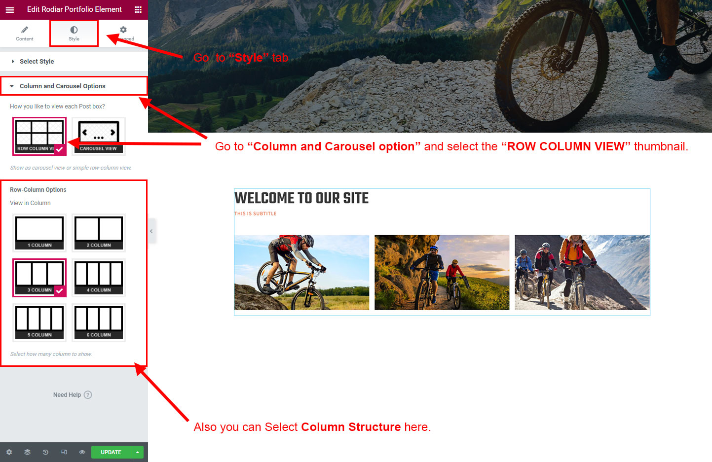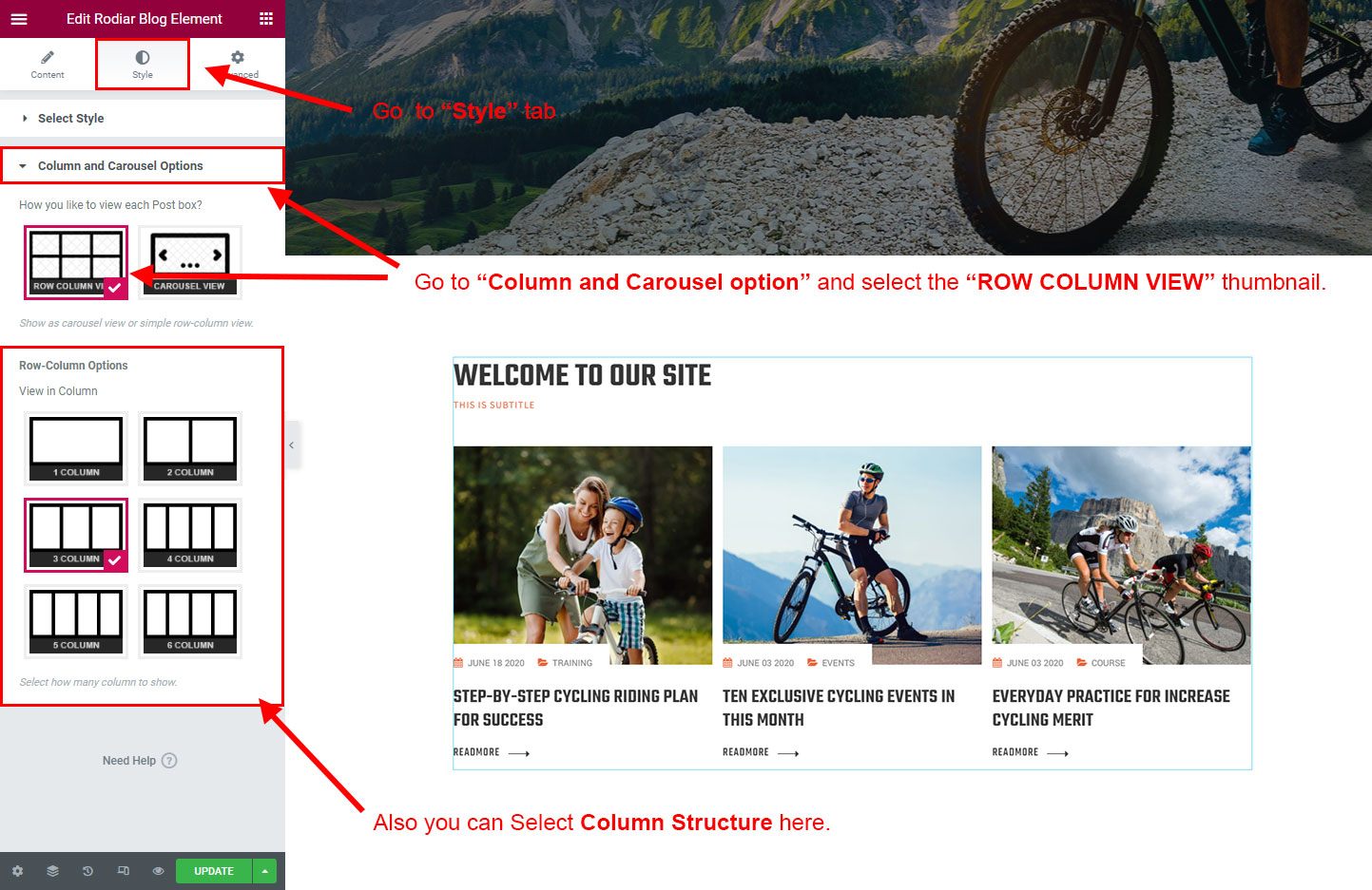 You can select how your post boxes will appear. Either Row/Column view or Carousel (sliding animated) view.