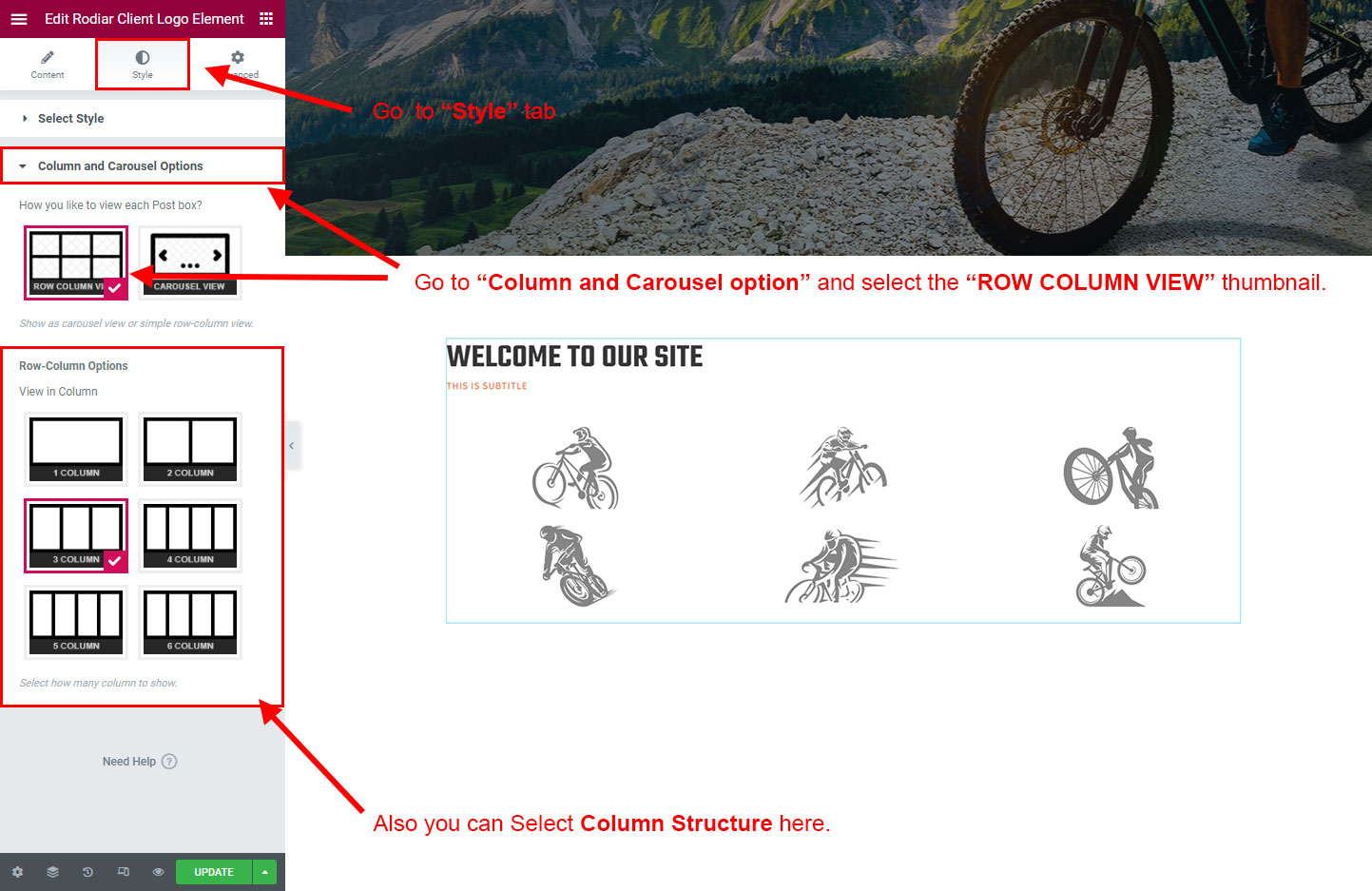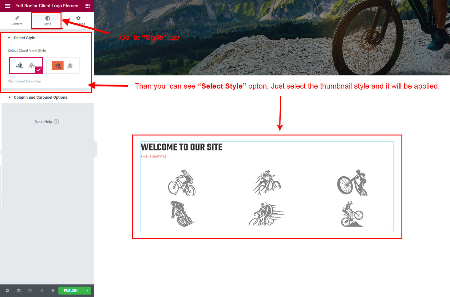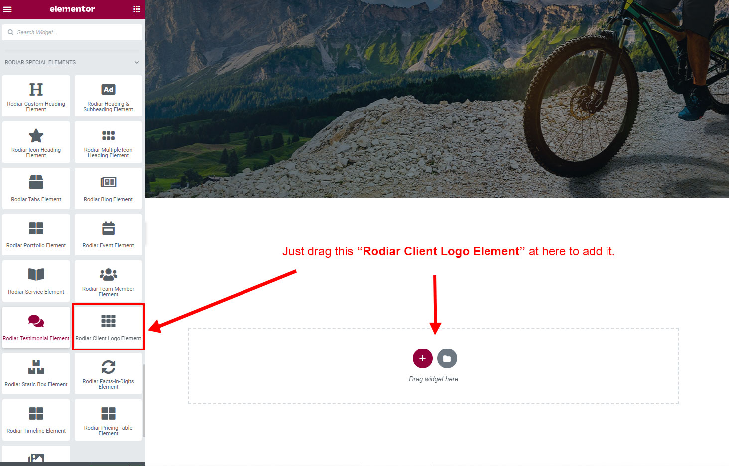 Now we have some Client Logo posts. So we can show all Client Logo on a page. Create a new page and add Rodiar Client Logo Element on a page by dragging it.