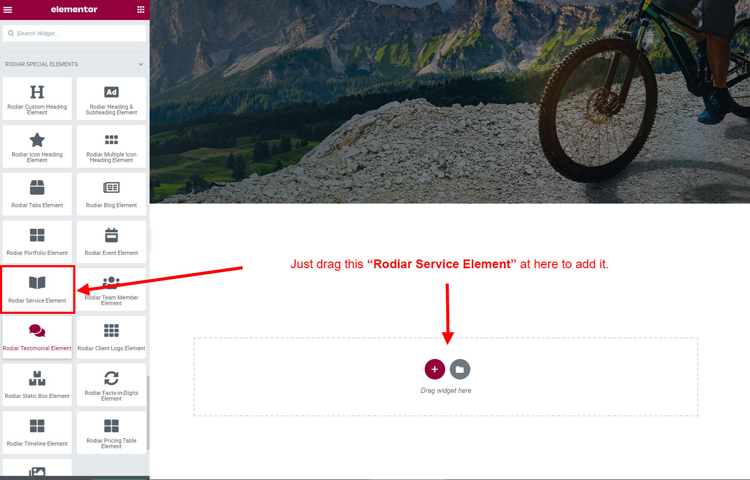 Now we have some Service posts. So we can show all Service on a page. Create a new page and add Rodiar Service Element on a page by dragging it.
