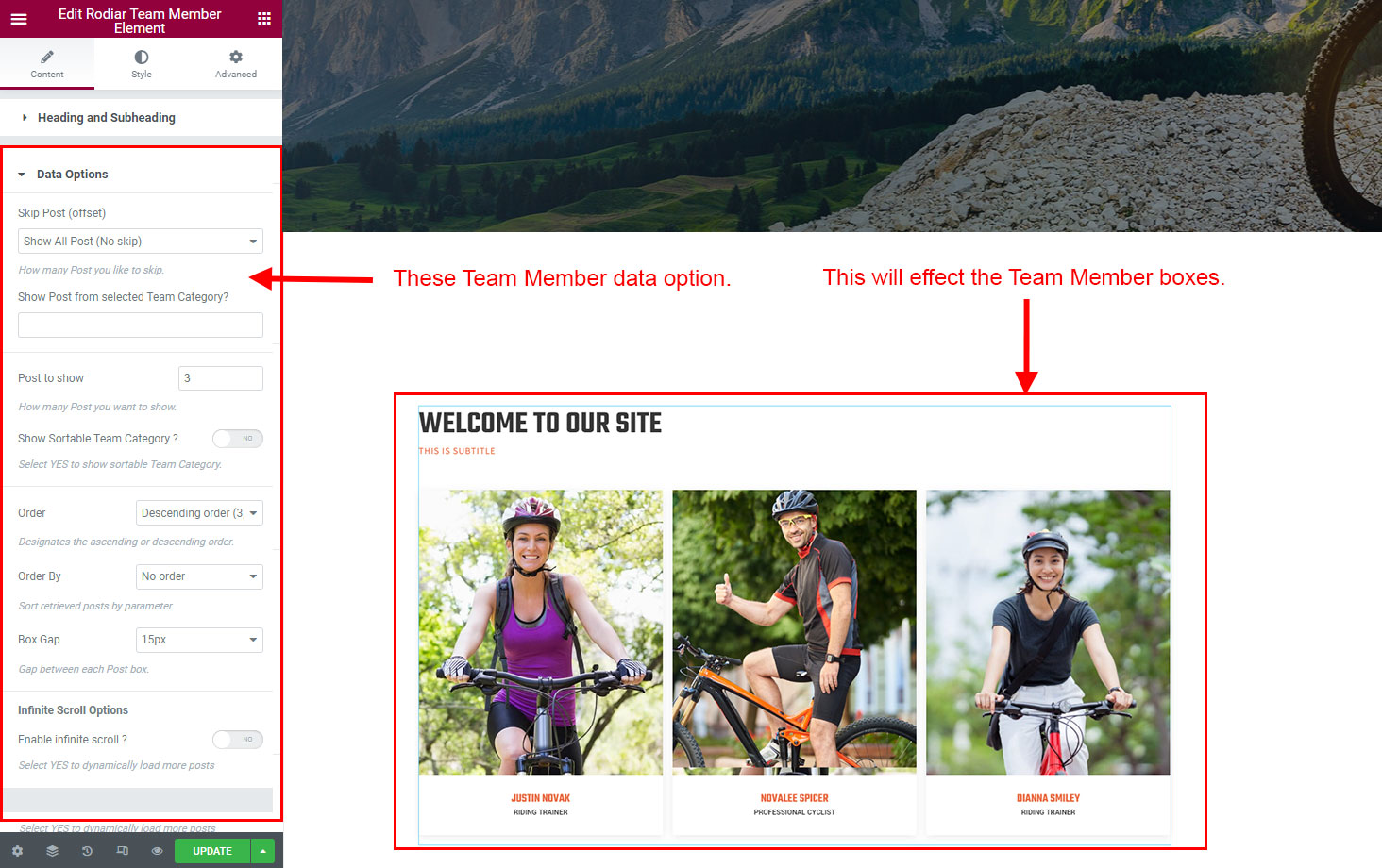 You can select the team options here. Like how many team you like to show, show team from selected category, team order etc.