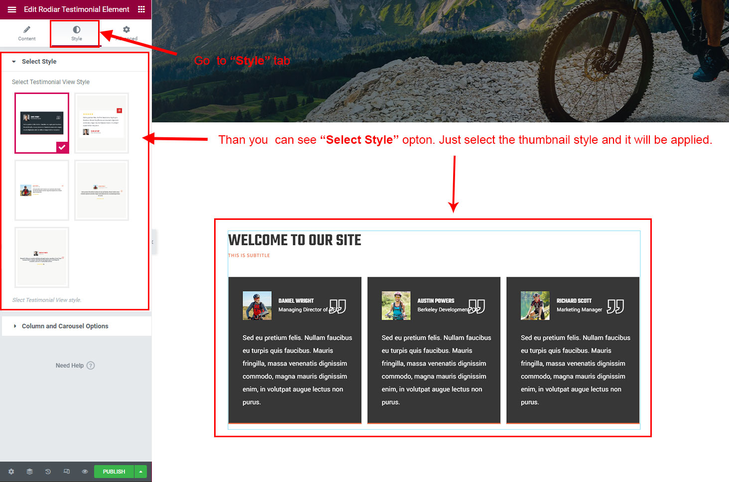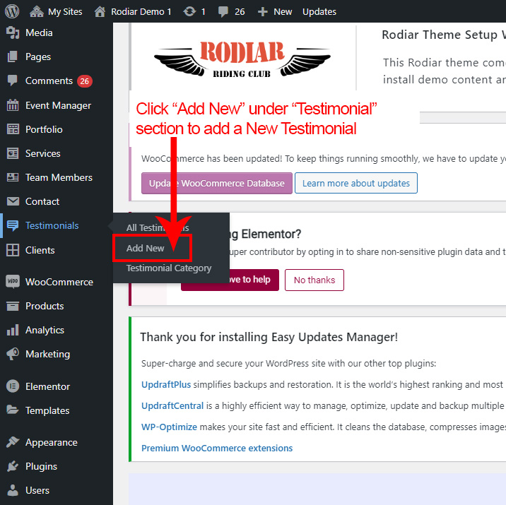 If you already done demo content setup than you can edit existing testimonial and check how we added data so you can understand each option perfectly.