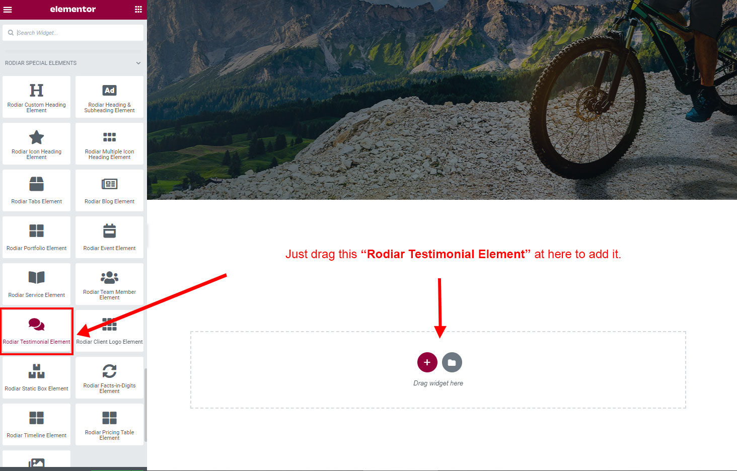 Now we have some Testimonial posts. So we can show all Testimonial on a page. Create a new page and add Rodiar Testimonial Element on a page by dragging it.