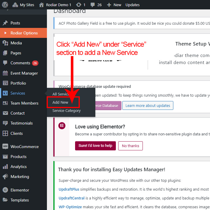If you already done demo content setup than you can edit existing service and check how we added data so you can understand each option perfectly.