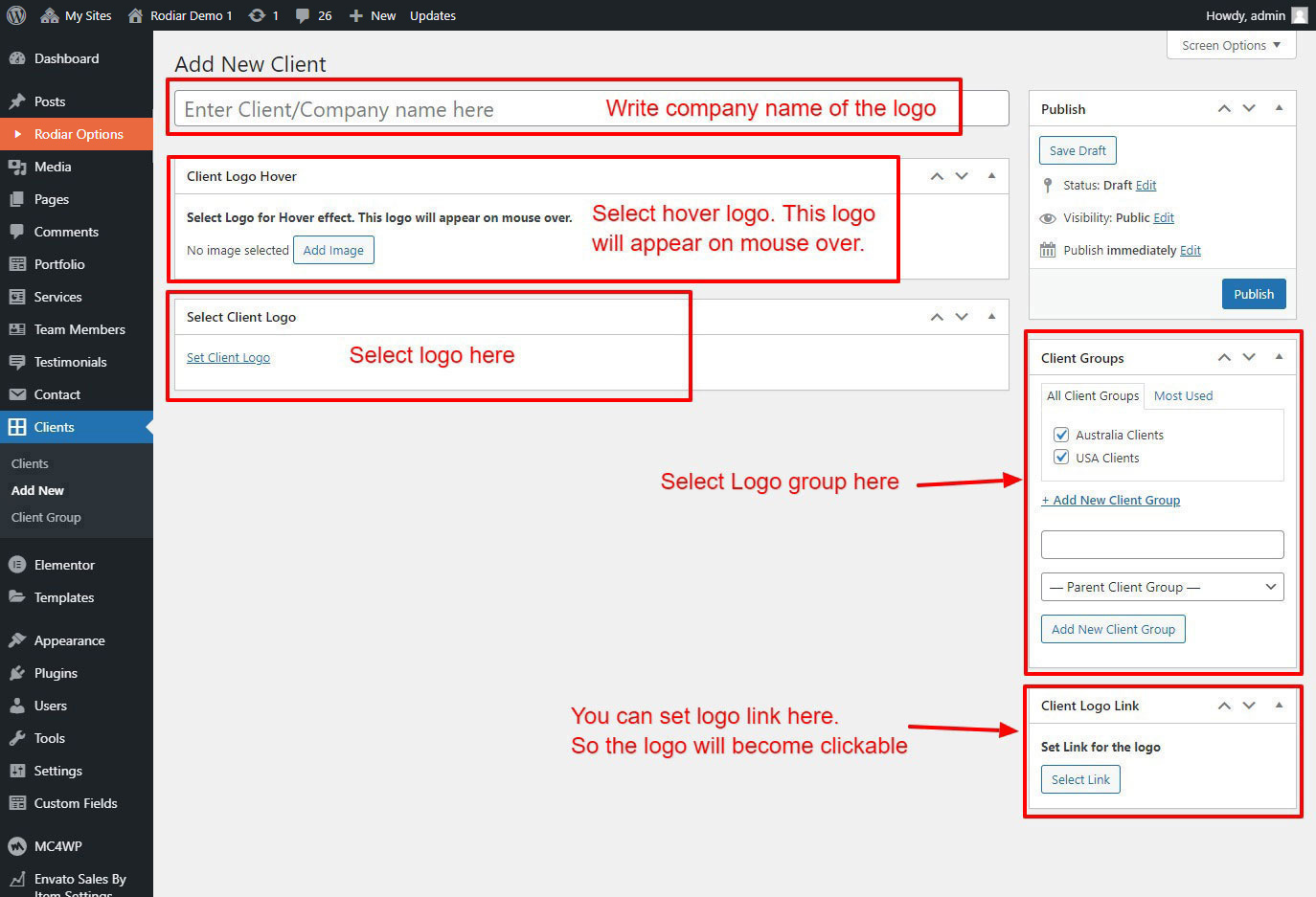 This will add a new logo. Repeat this steps and add some 3 or 6 client logo posts with the steps described above.