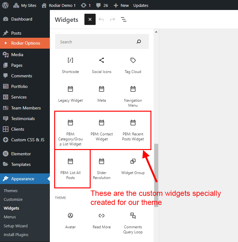 There are some widgets created specially for Rodiar theme. Here are the widgets:
