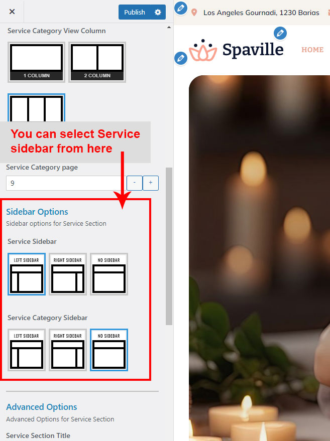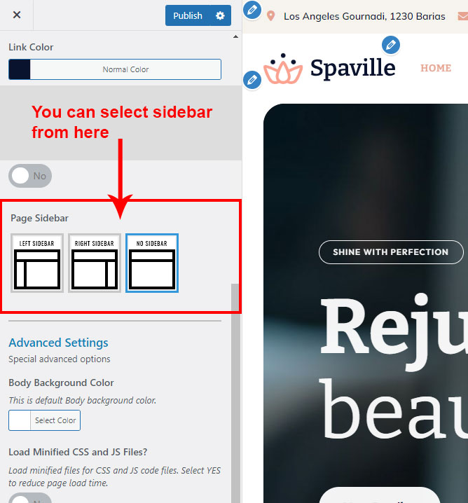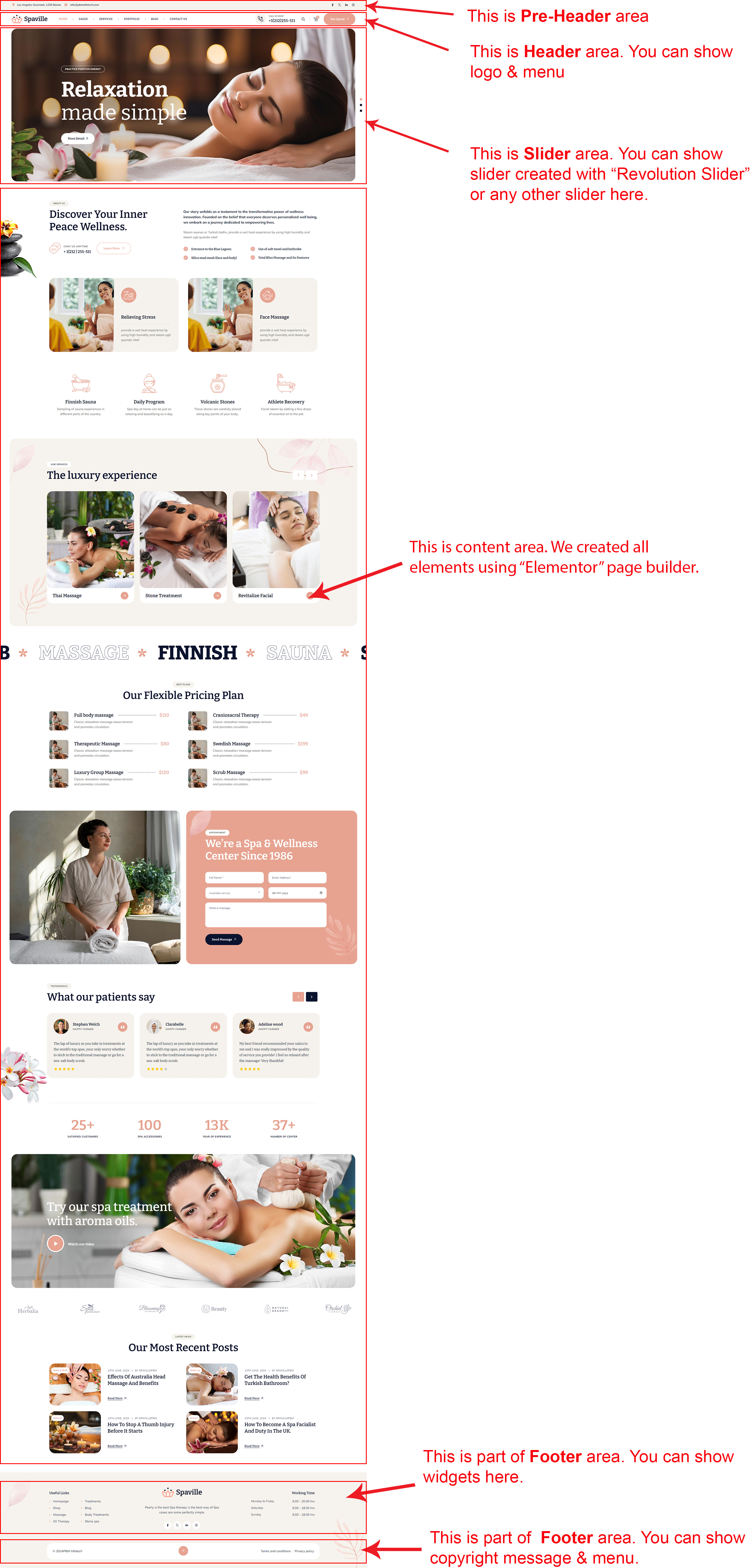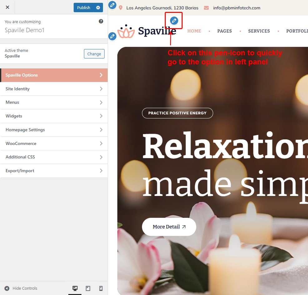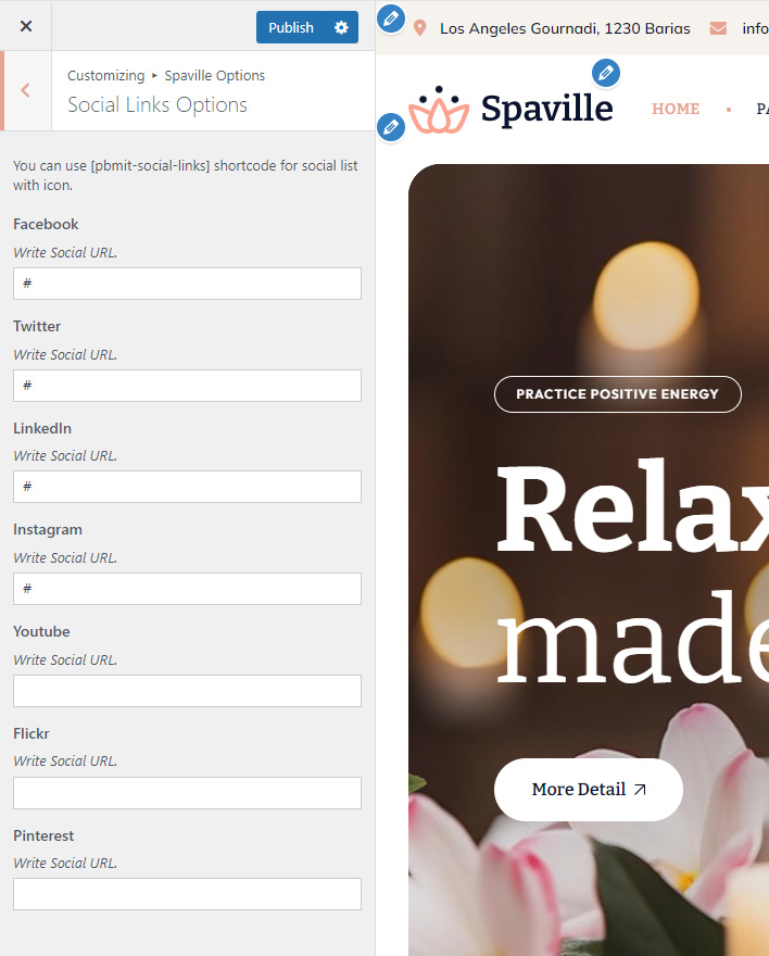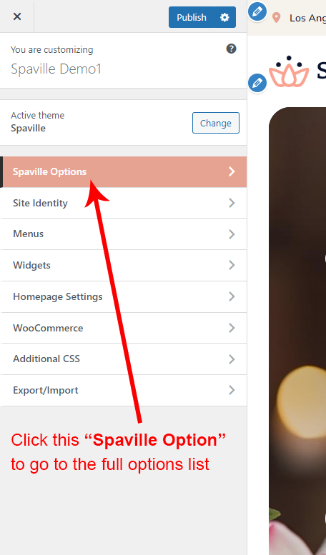 There are different sections in Spaville theme. Here you will find name of each section name so you can find their options easily. You can customize each sections from Spaville Options easily.