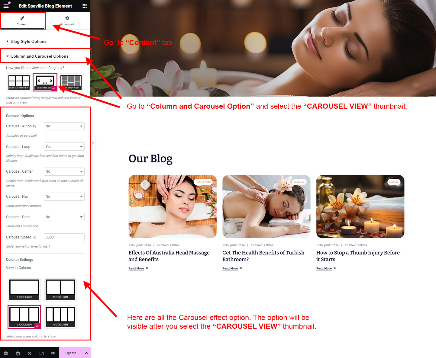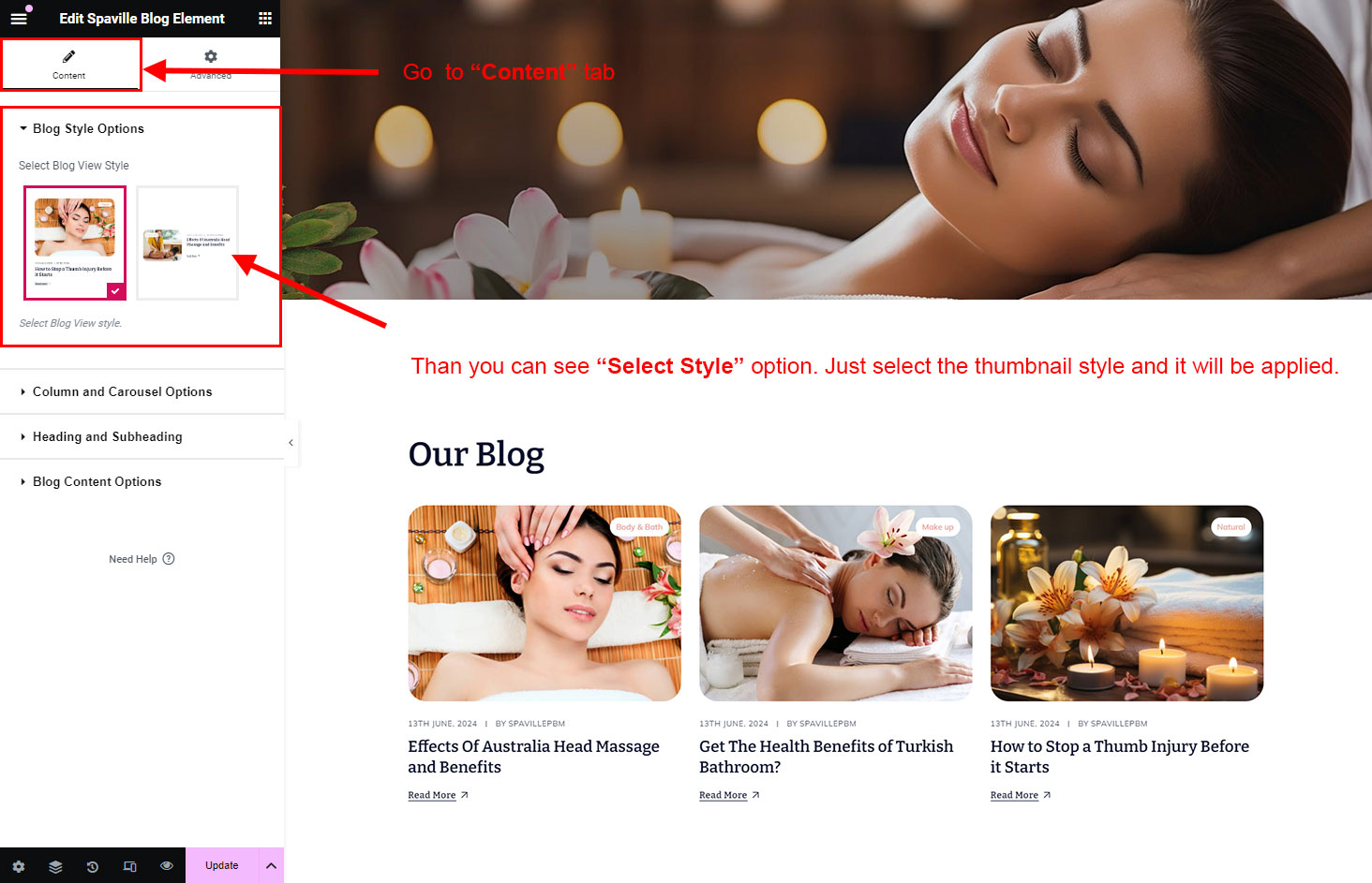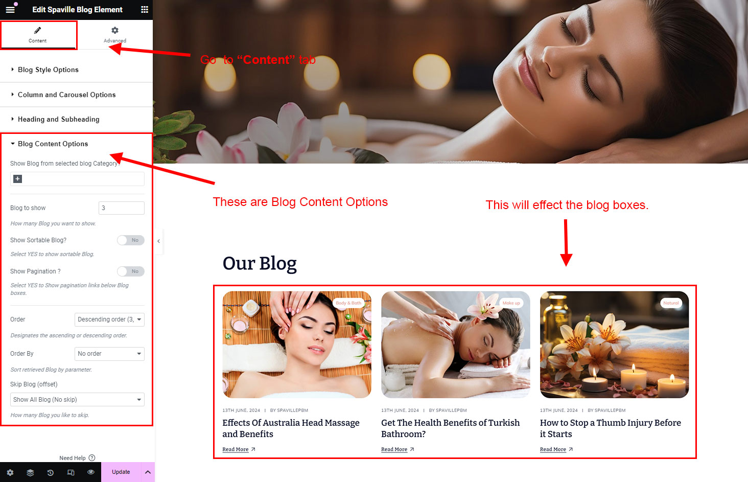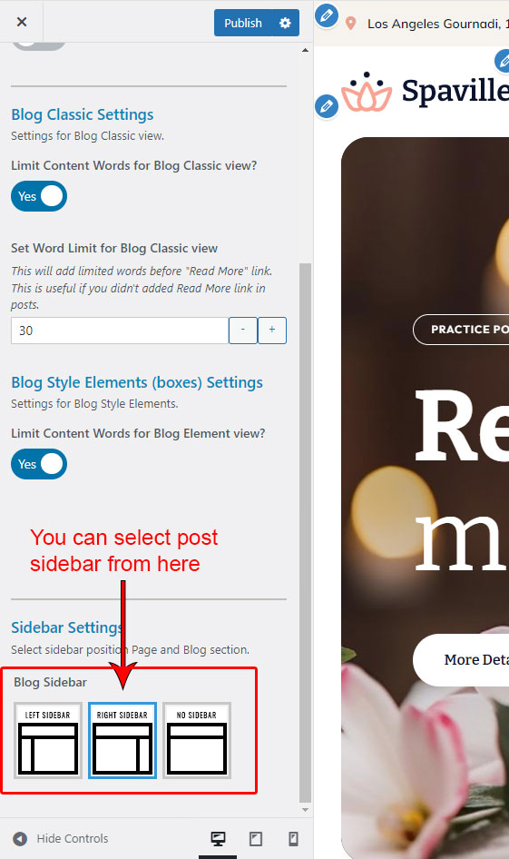 There are different sections in Spaville theme. Here you will find name of each section name so you can find their options easily. You can customize each sections from Spaville Options easily.