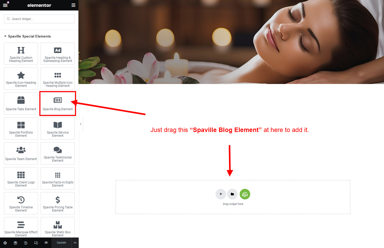We created a Blog Element in Elementor Page Builder which you can use to show post on any page you want. Just drag and drop the Spaville Blog Element on any page and the post list will appear.