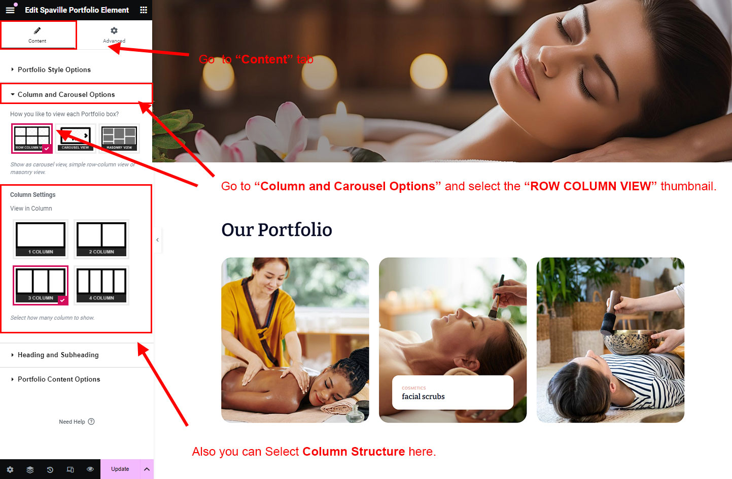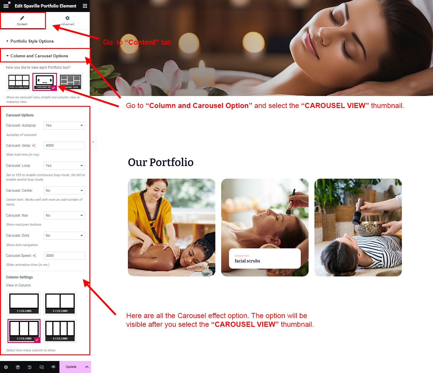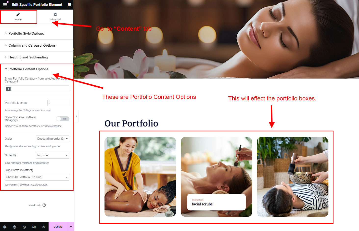 You can select the portfolio options here. Like how many portfolio you like to show, show portfolio from selected category, portfolio order etc.