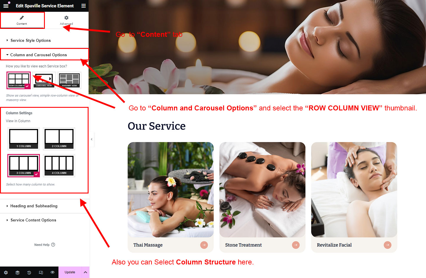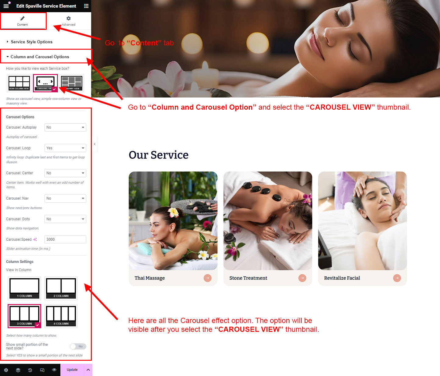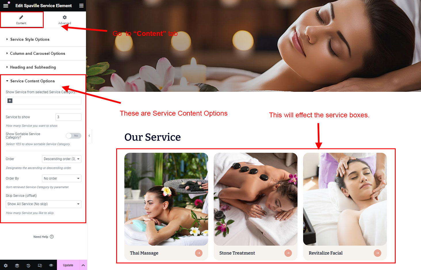 You can select the service options here. Like how many service you like to show, show service from selected category, service order etc.