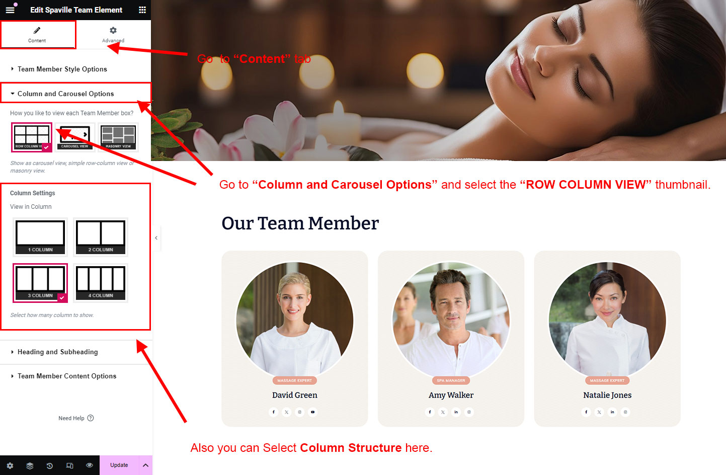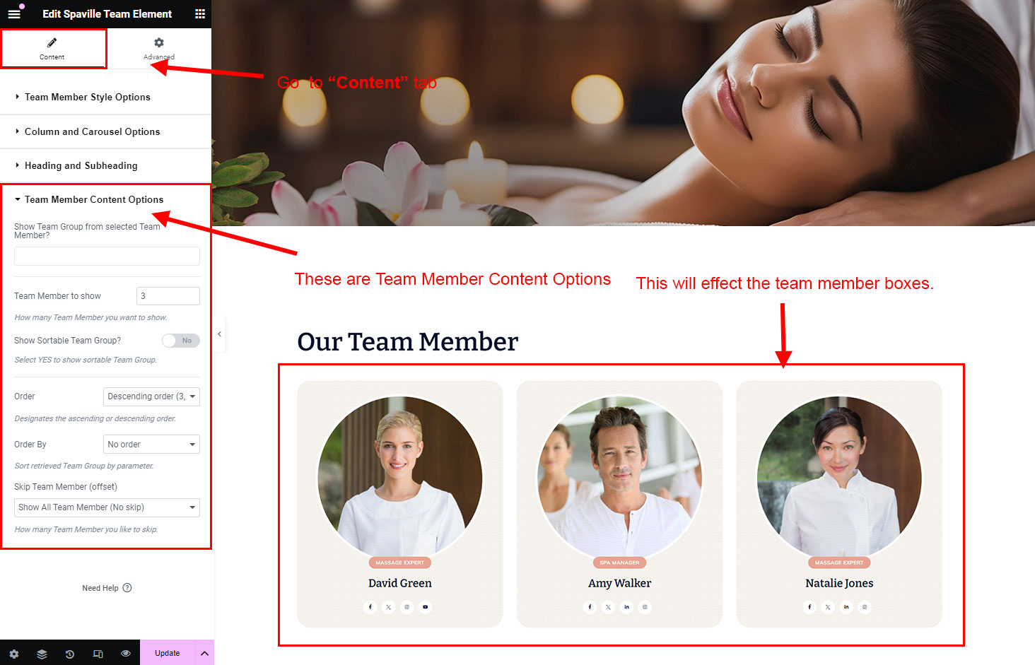 You can select the team options here. Like how many team you like to show, show team from selected category, team order etc.