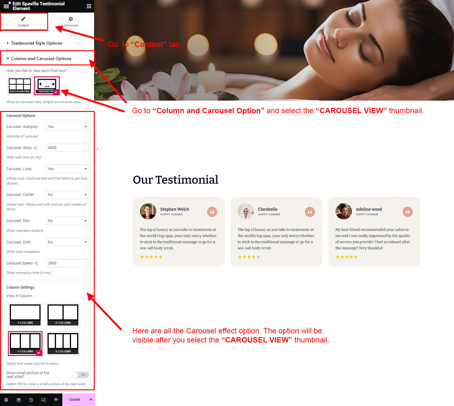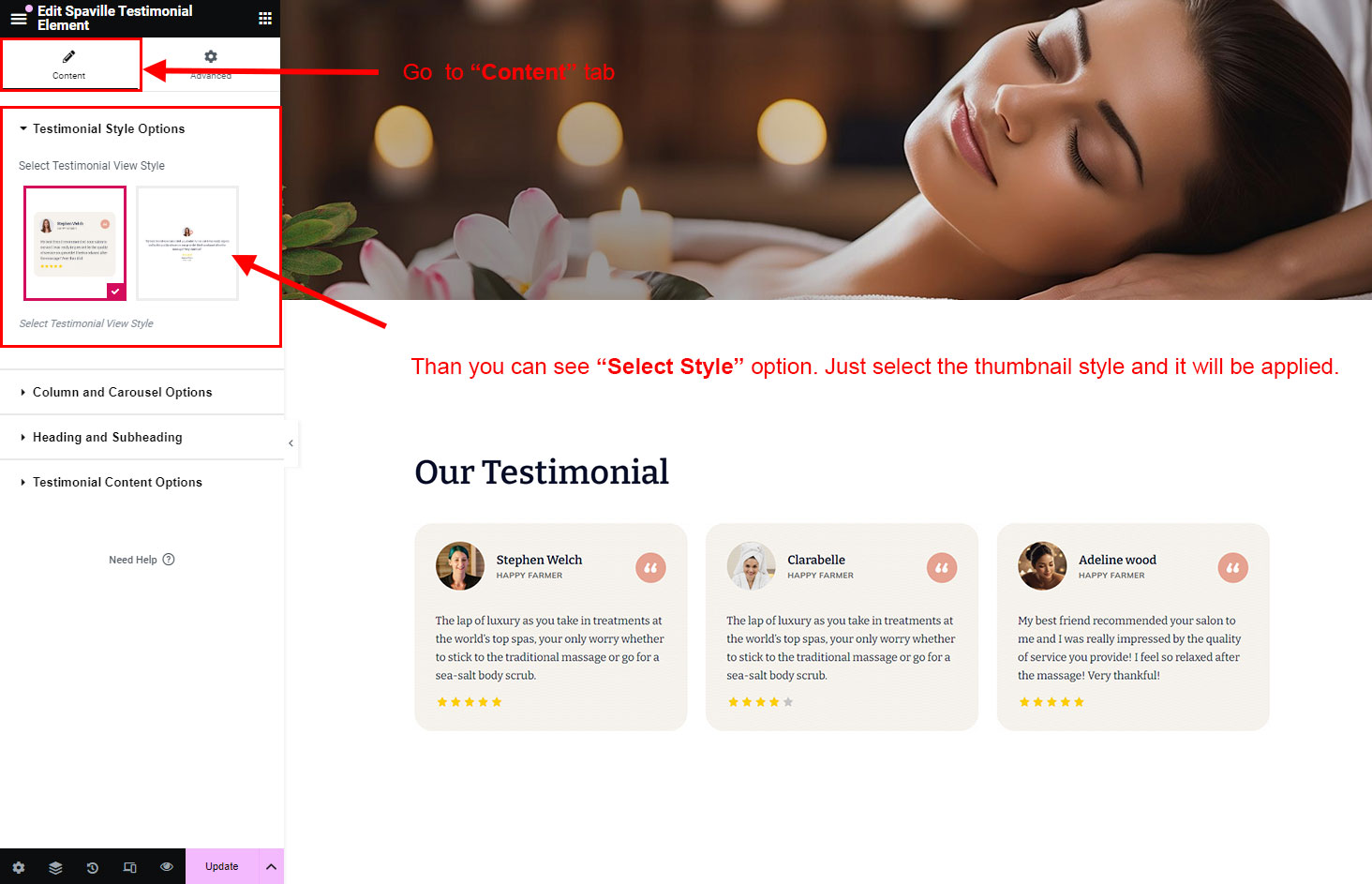 Just go to Testimonial section and create some testimonial. Here is the full detail about how to create a Testimonial: