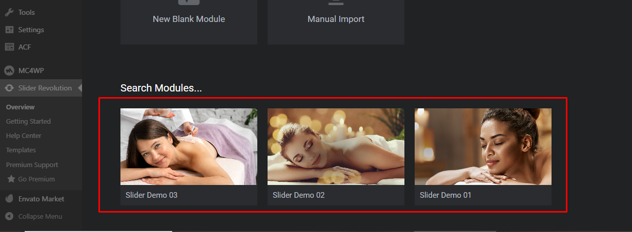 Once imported, the sliders will be automatically assigned to the homepages. You can also find all imported sliders in the Slider Revolution section, where you can edit and use them on your website.