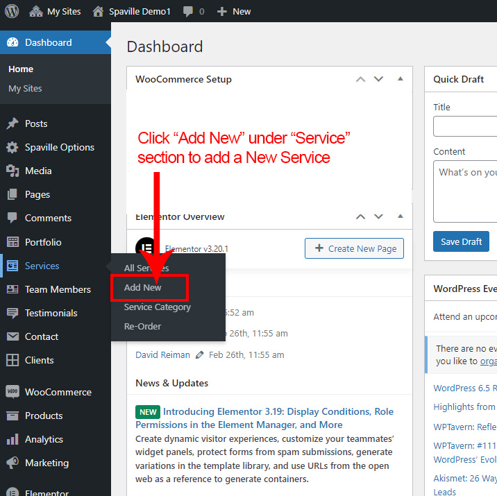 Now we have some Service posts. So we can show all Service on a page. Create a new page and add Spaville Service Element on a page by dragging it.