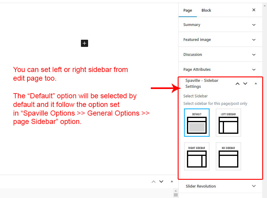 This is specially created sidebar postion (either left or right as selected in Spaville Options section) that will be shown as sidebar widget on Blog pages like blog list view, single post view, blog category view etc.