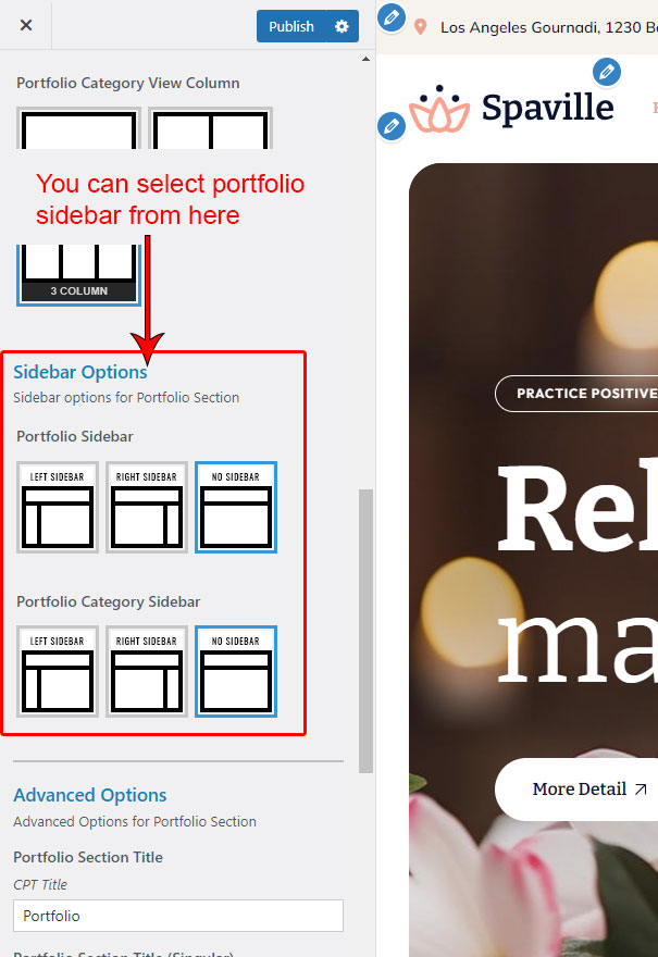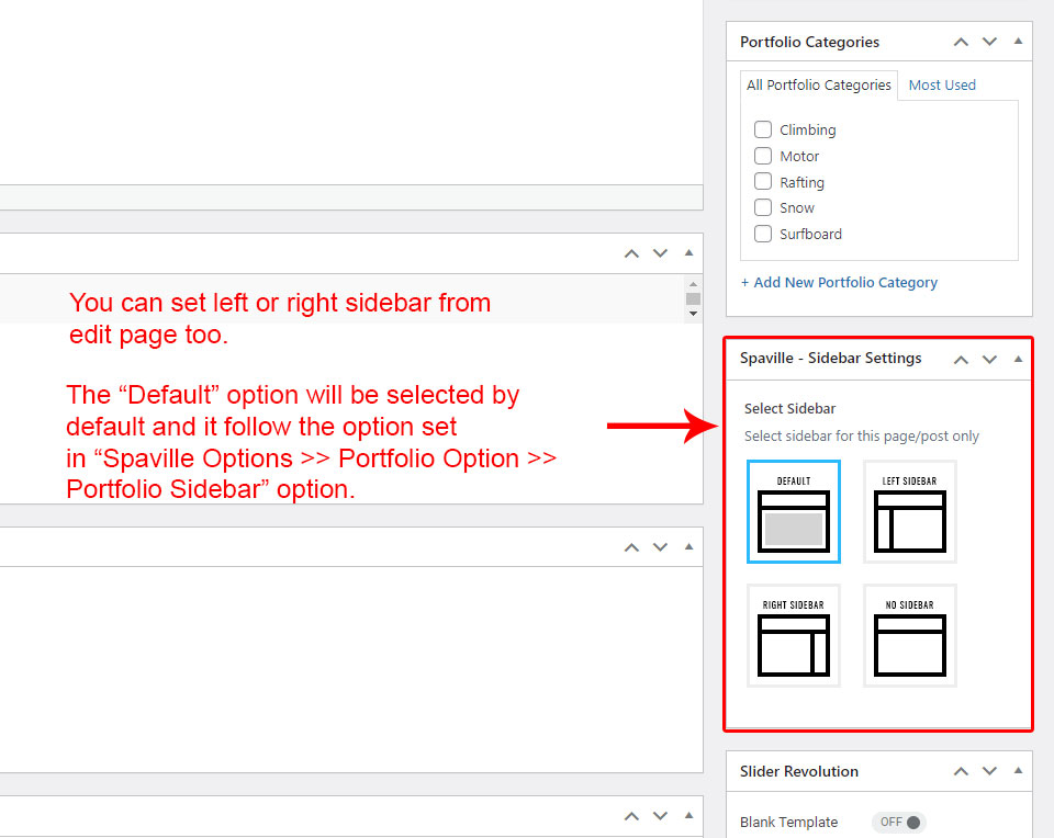 This is specially created sidebar postion for Portfolio single view only. You can select sidebar view (left or right) in Spaville Options >> Portfolio Options section. Also you can show single Portfolio without sidebar too.