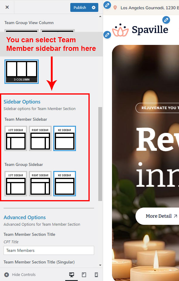 This is specially created sidebar postion for Team Group view only. You can select sidebar view (left or right) in Spaville Options >> Team Member Options section. Also you can show Team Group without sidebar too.