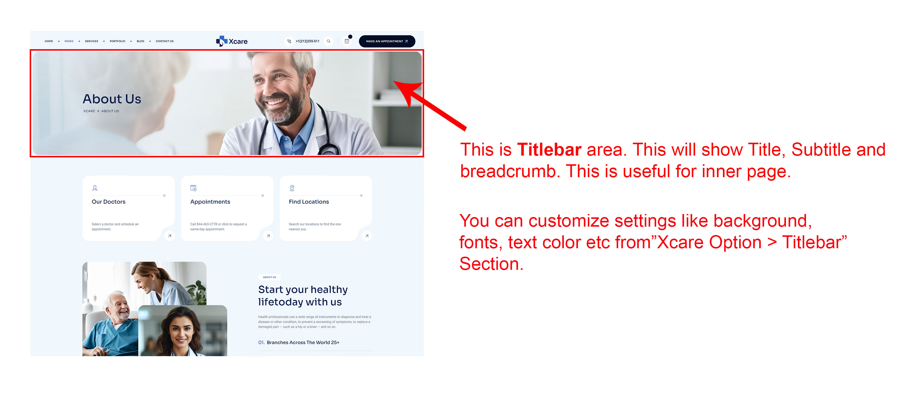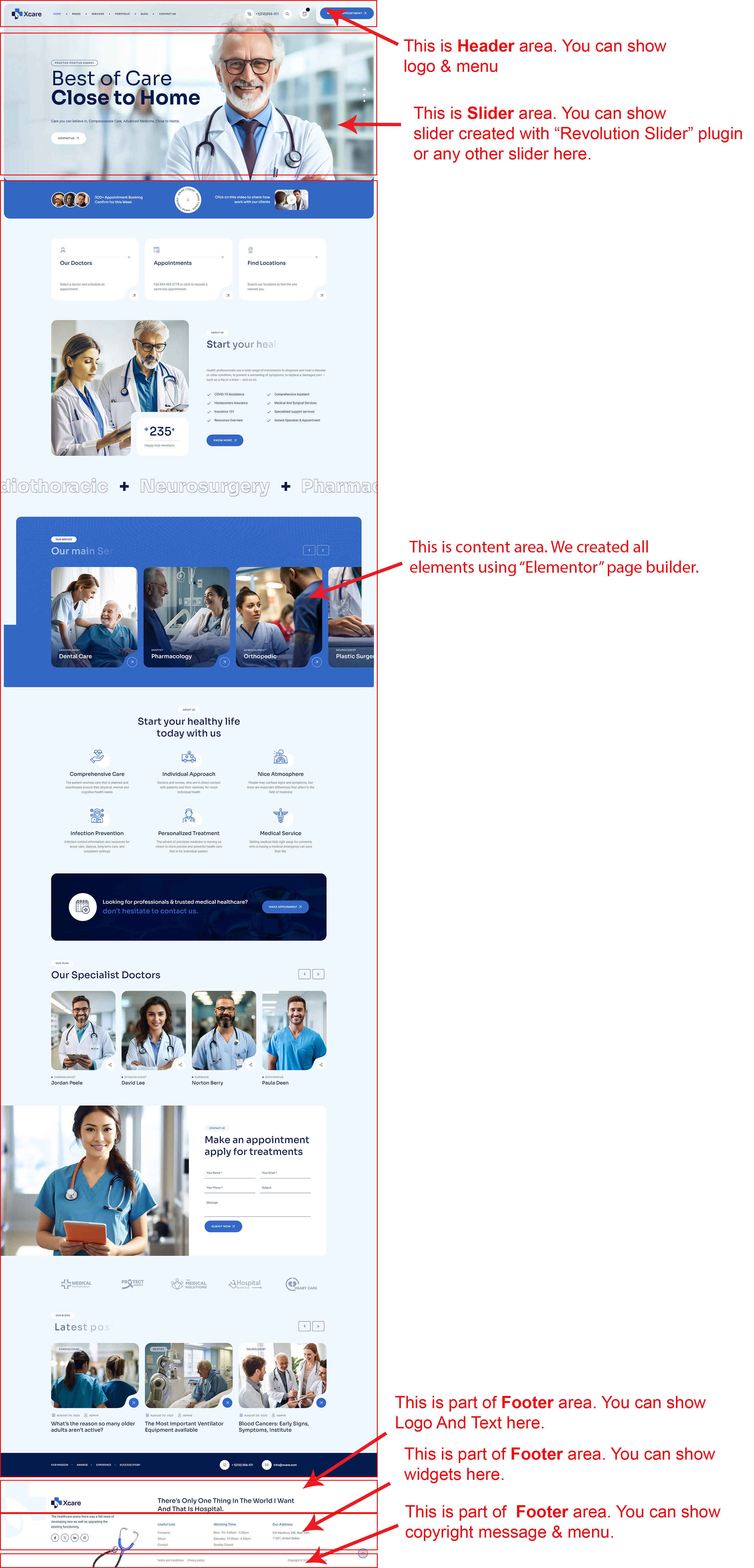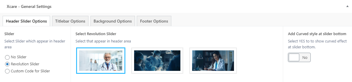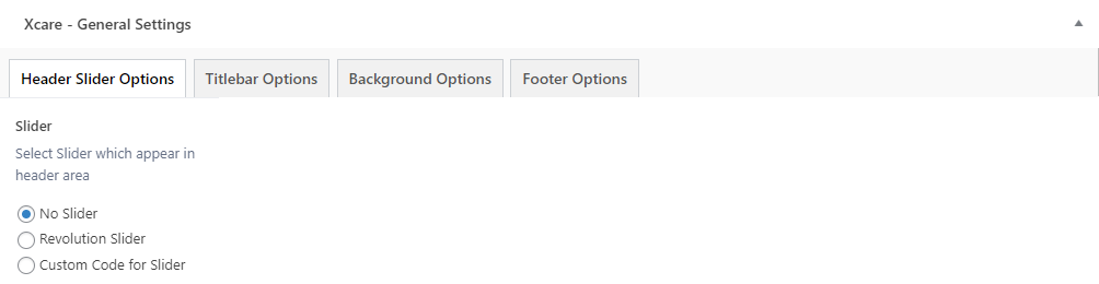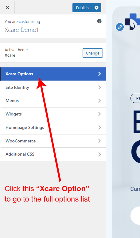 There are different sections in Xcare theme. Here you will find name of each section name so you can find their options easily. You can customize each sections from Xcare Options easily.